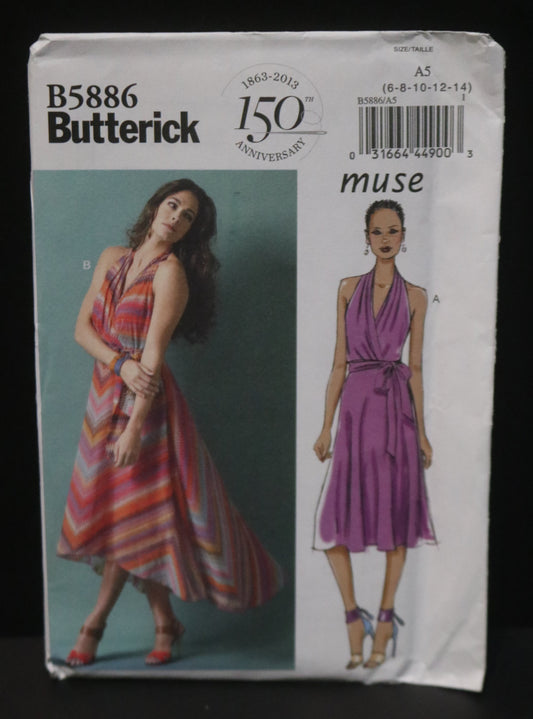 Butterick 5886 Misses Dress and Belt Sewing Pattern - UNCUT - Size 6 8 10 12 14 or Size 14 16 18 20 22