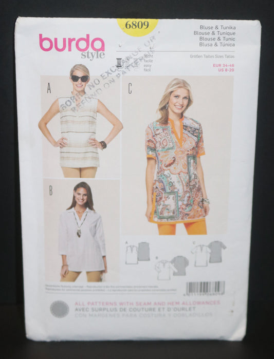 Burda 6809 Misses Blouse and Tunic Sewing Pattern UNCUT Size 8 - 20