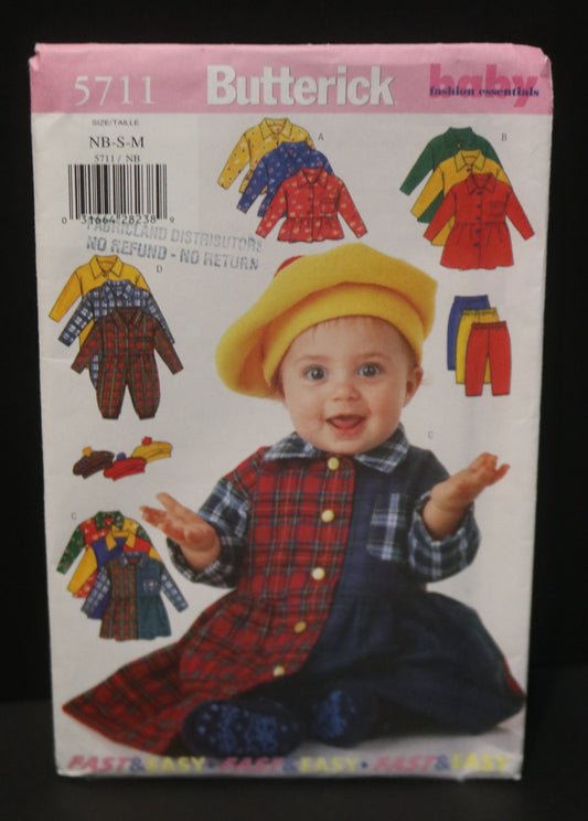 Butterick 4665 Infants Rompers Jumpsuit Dress and Hat Sewing Pattern - UNCUT - Size NB S M