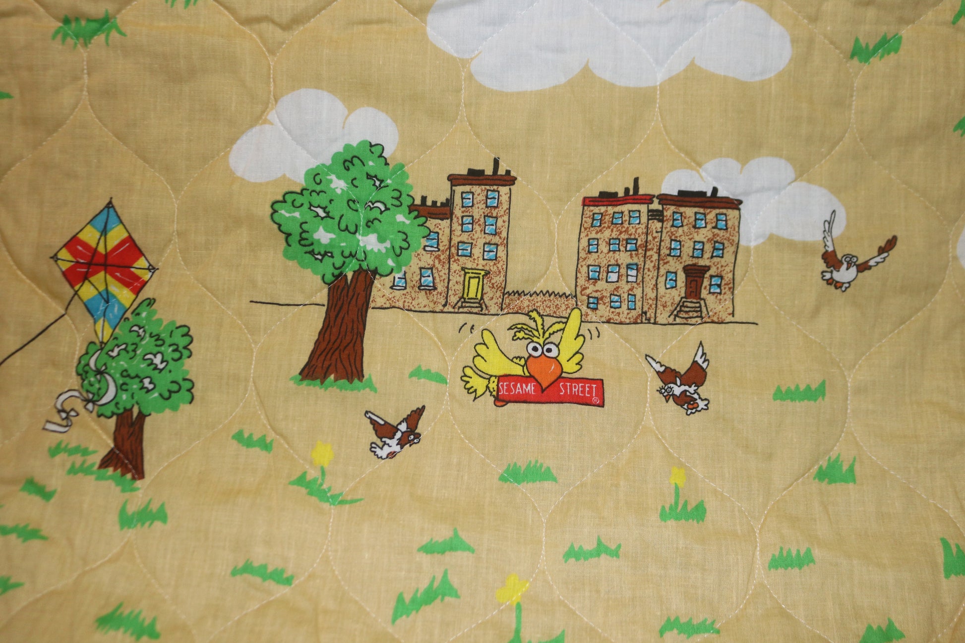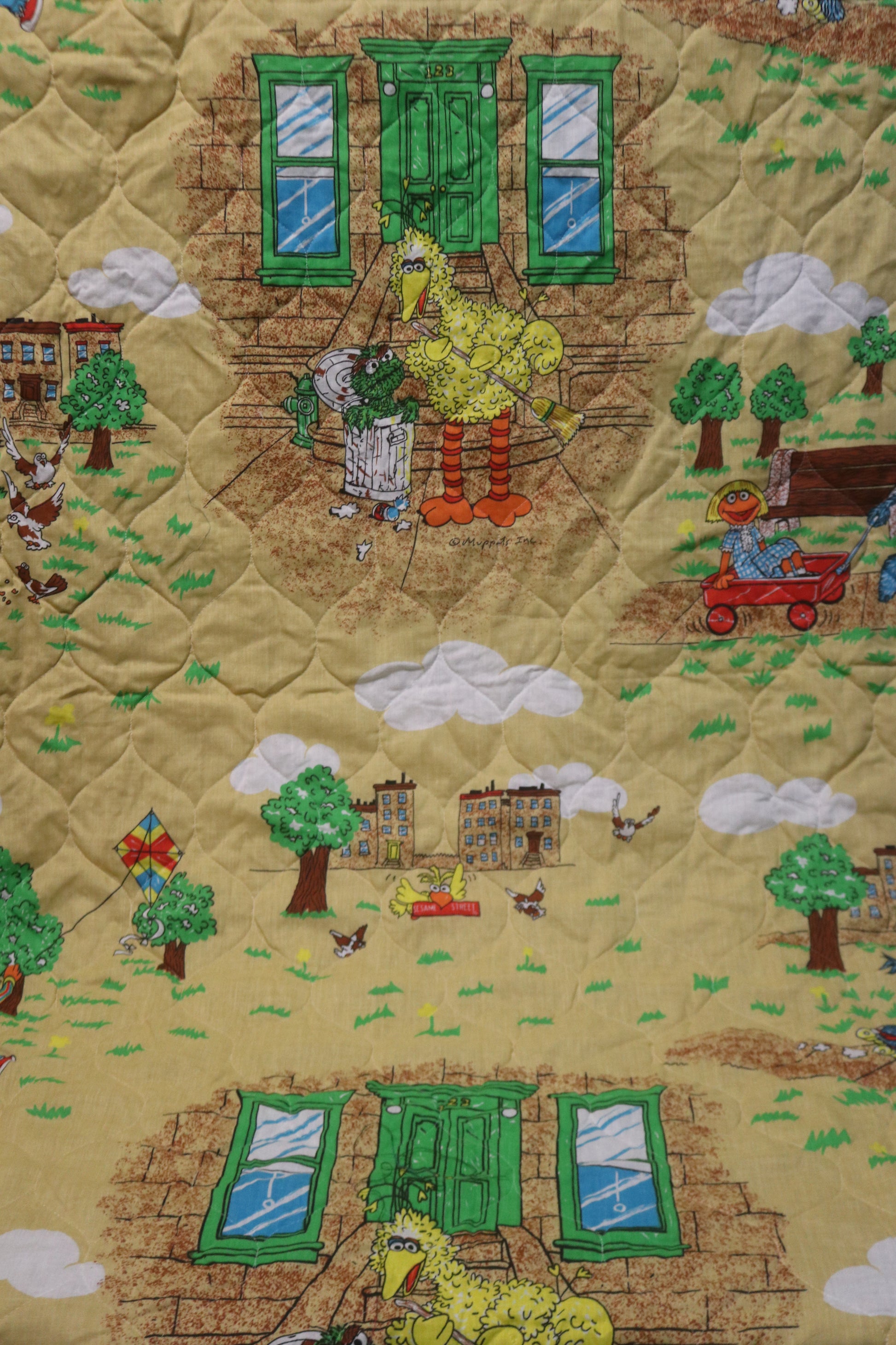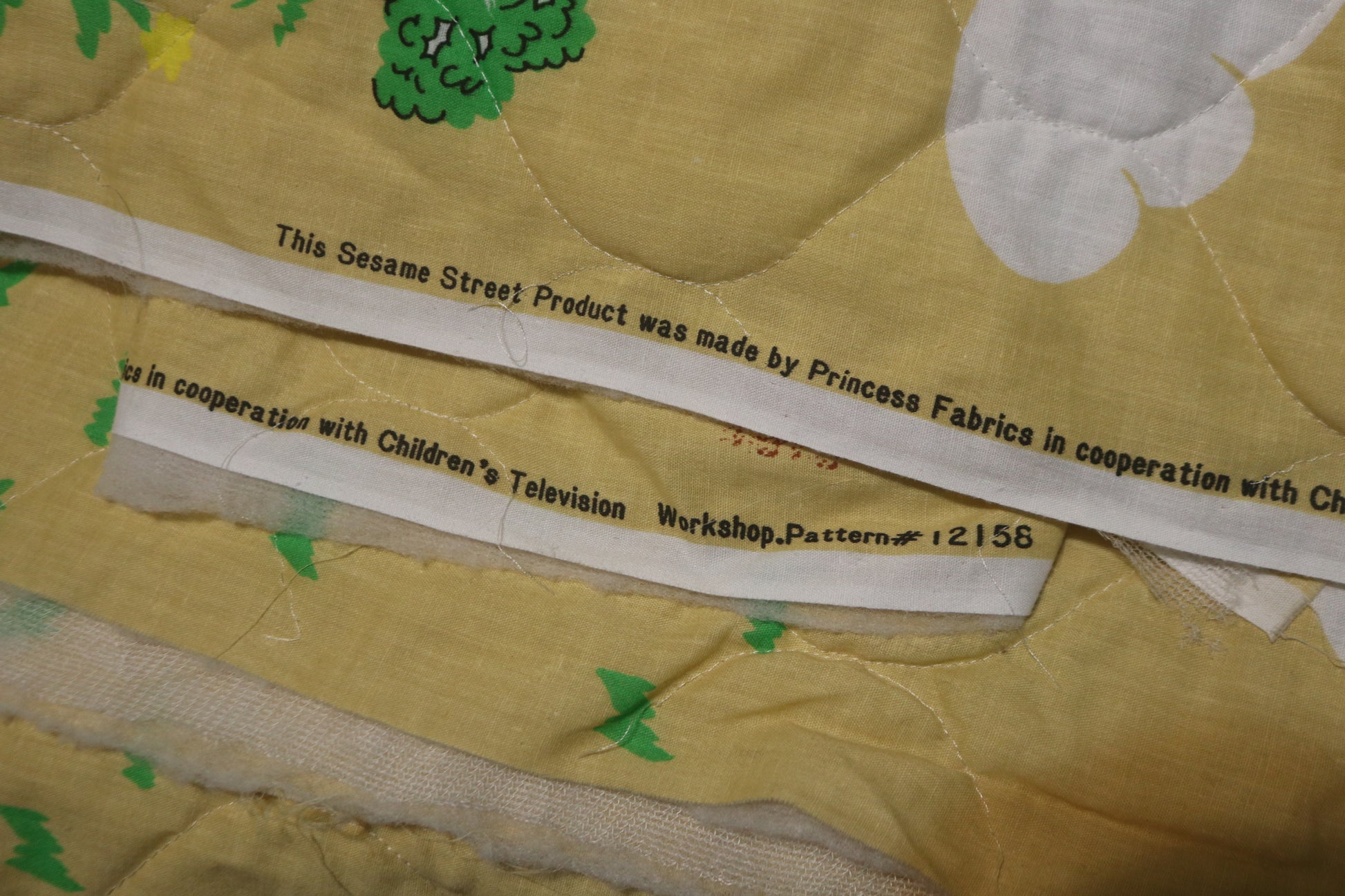 4+ Yards Vintage Rare Sesame Street Quilted Fabric with Big Bird, Bert and Ernie, Cookie Monster, Oscar the ground and Grover.