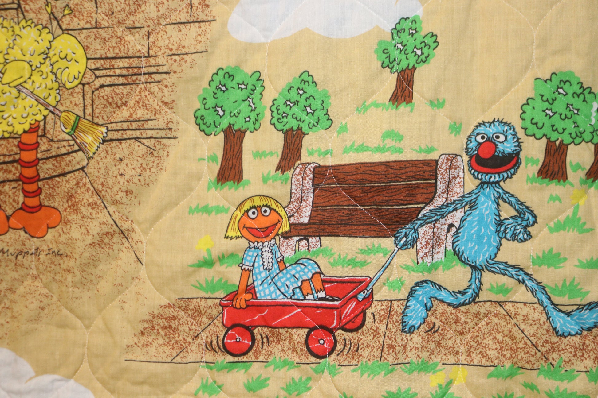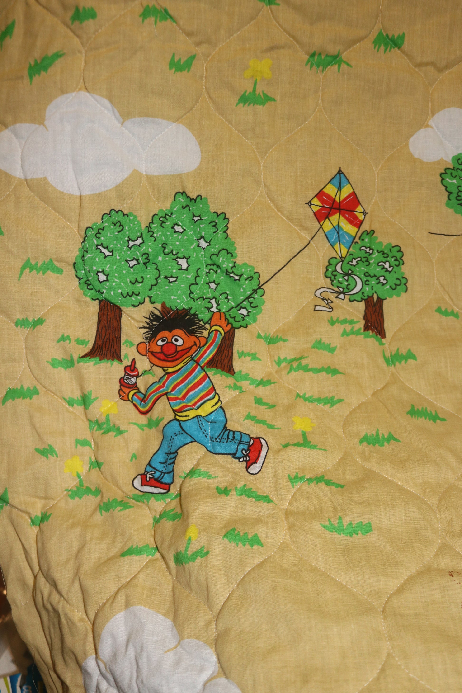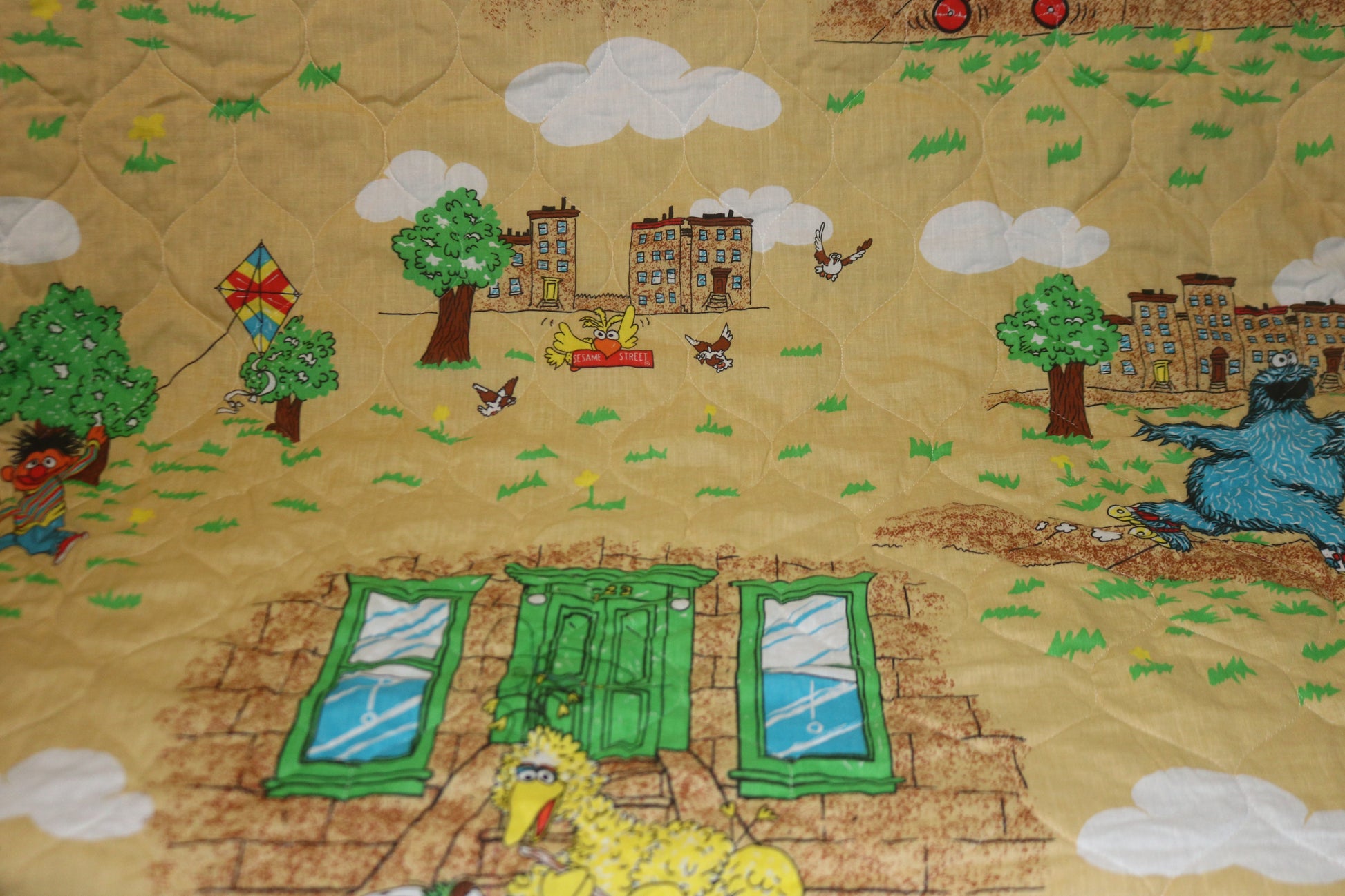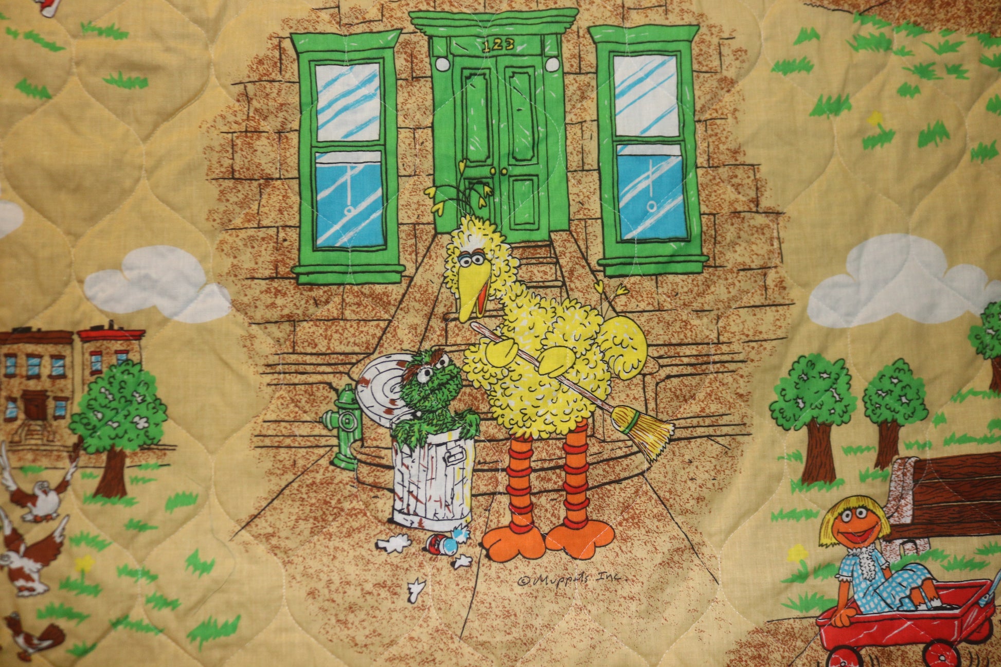 4+ Yards Vintage Rare Sesame Street Quilted Fabric with Big Bird, Bert and Ernie, Cookie Monster, Oscar the ground and Grover.