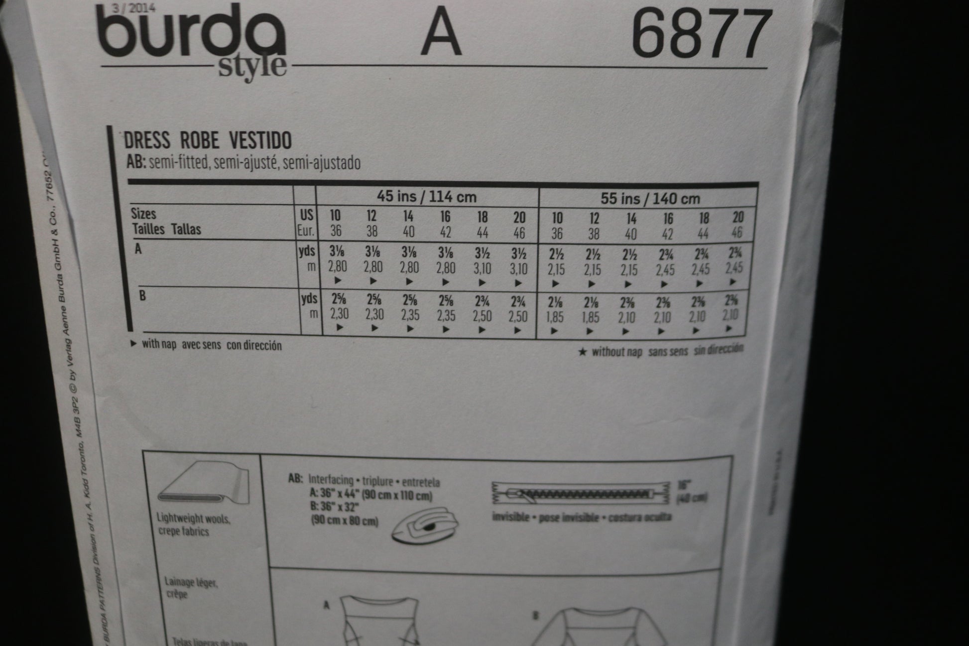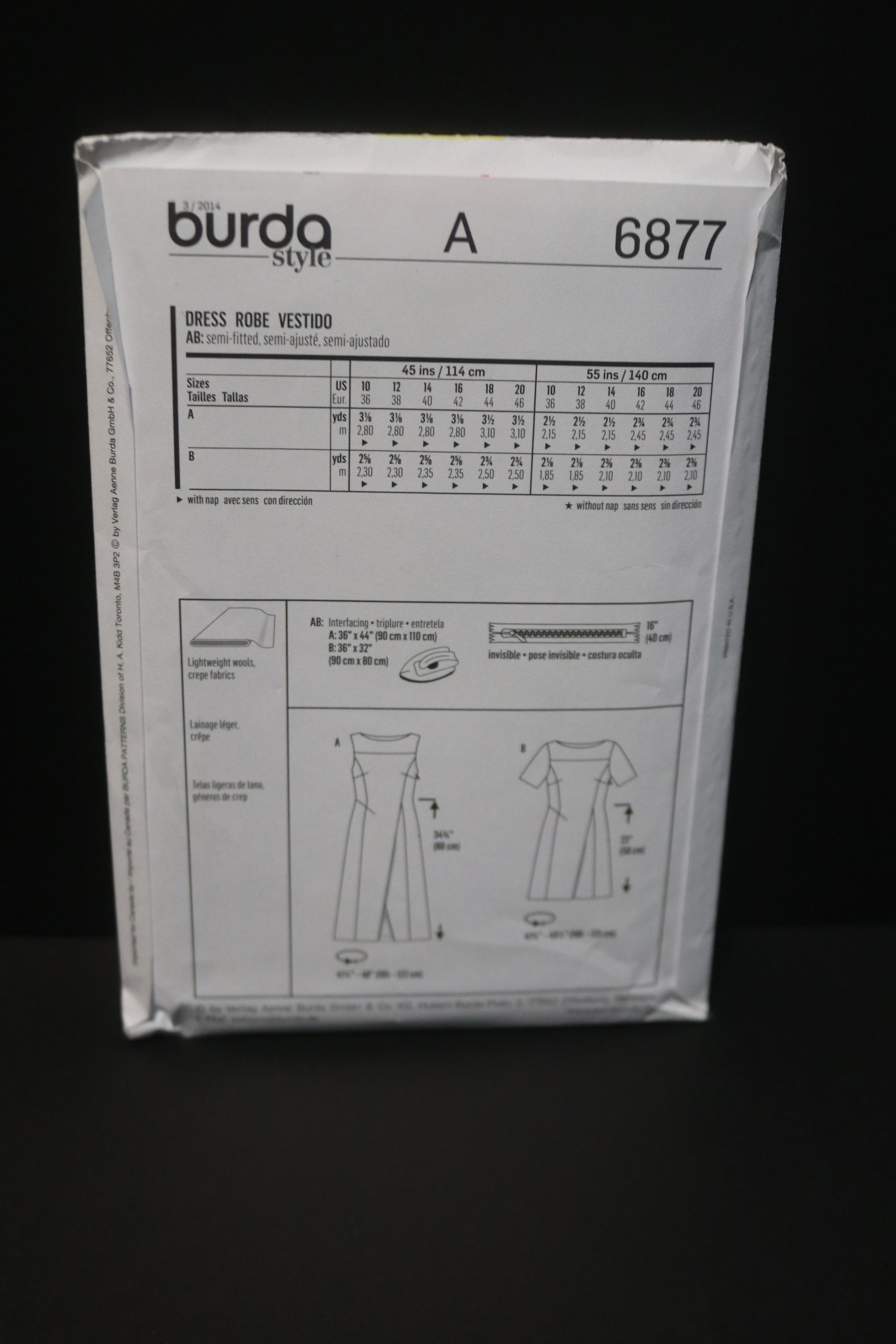 Burda 6877 Misses Dress Sewing Pattern - UNCUT - Size 10 - 20