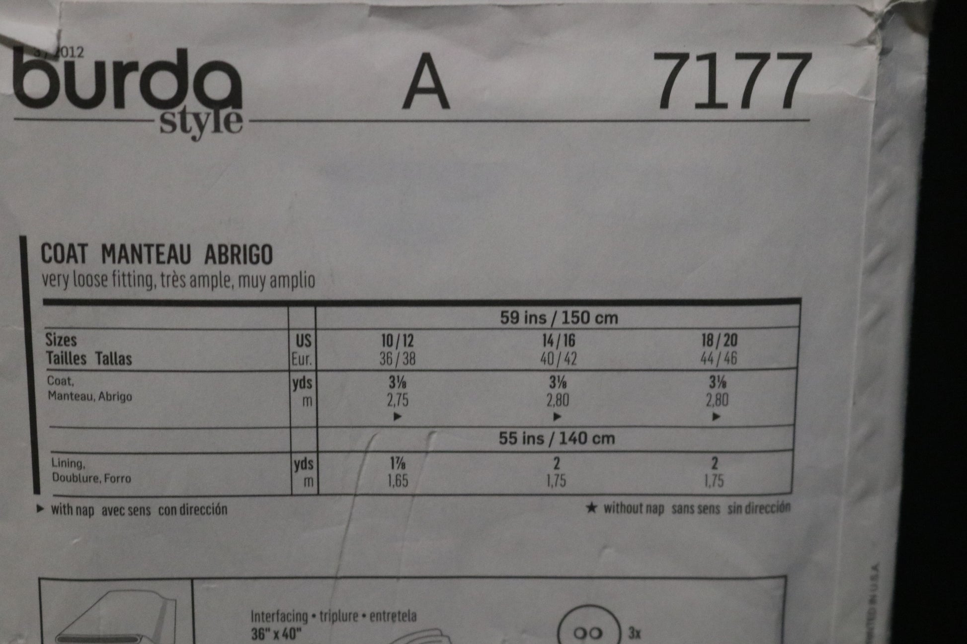 Burda 7177 Misses Coat Sewing Pattern - UNCUT Size 10/12 14/16 18/20