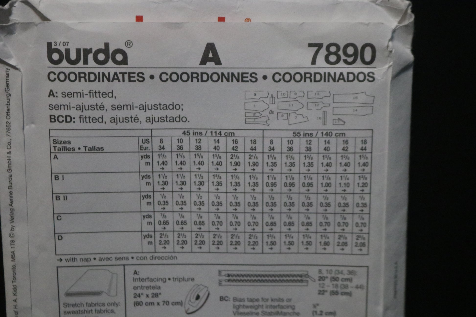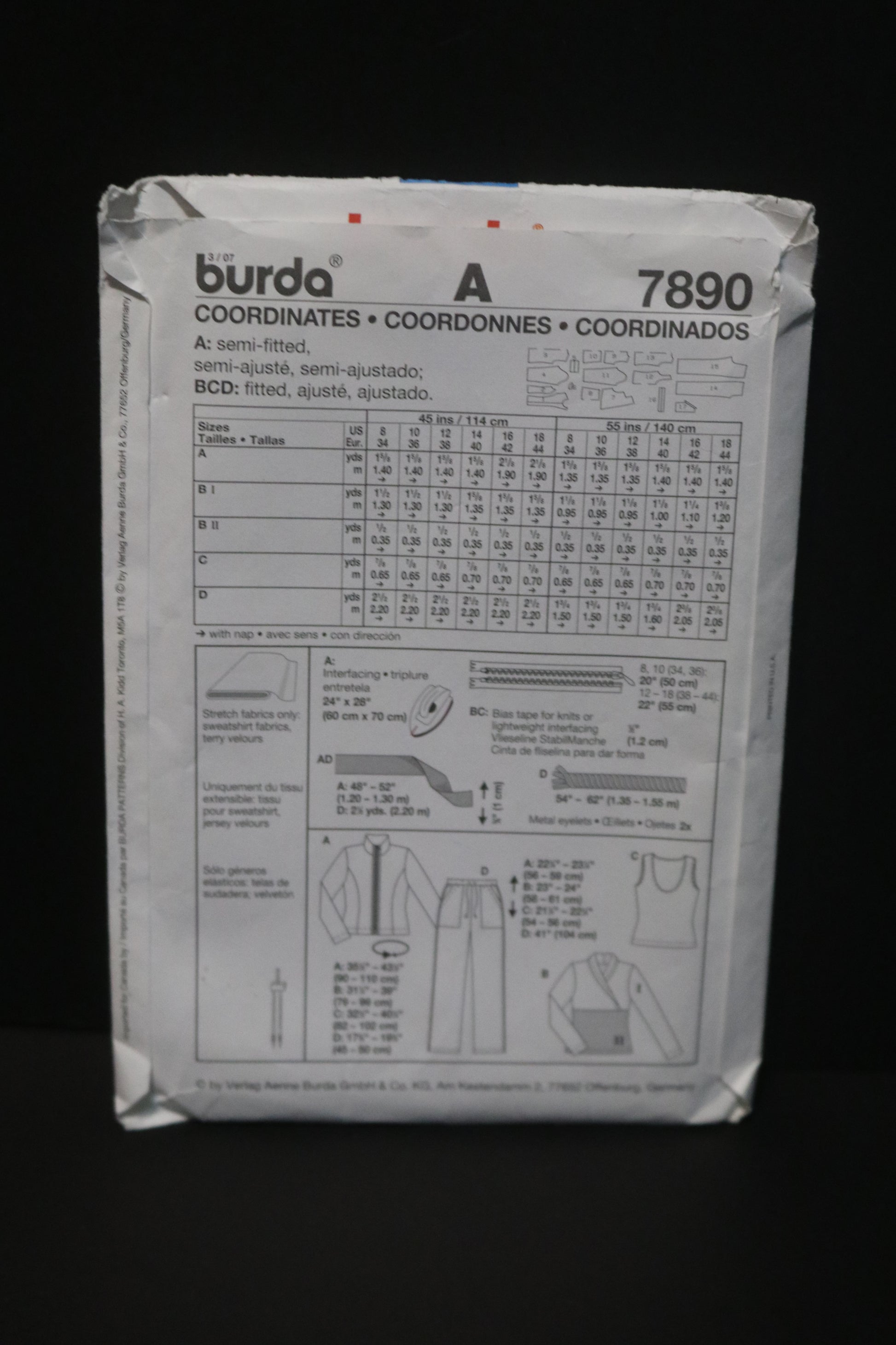 Burda 7890 Misses Jacket, Top and Pants Sewing Pattern