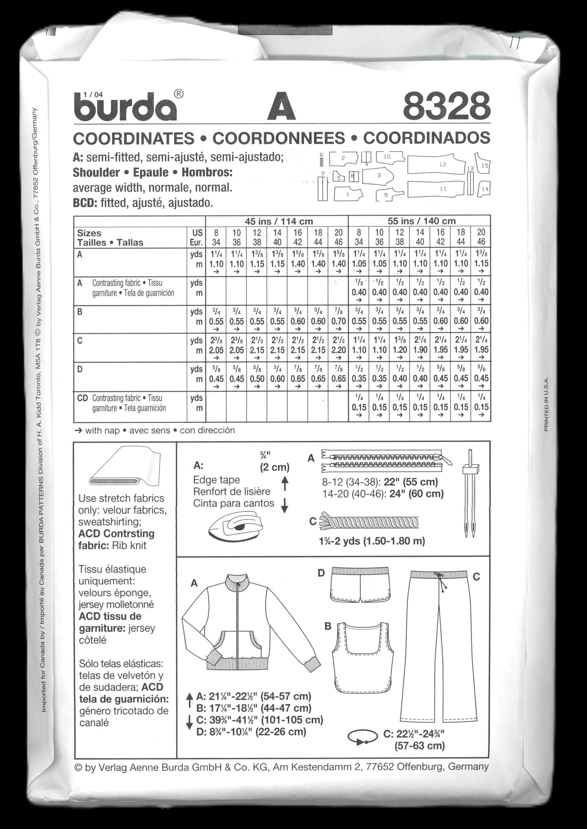 Burda 8328 Misses Jacket, Top Pants and Shorts Sewing Pattern
