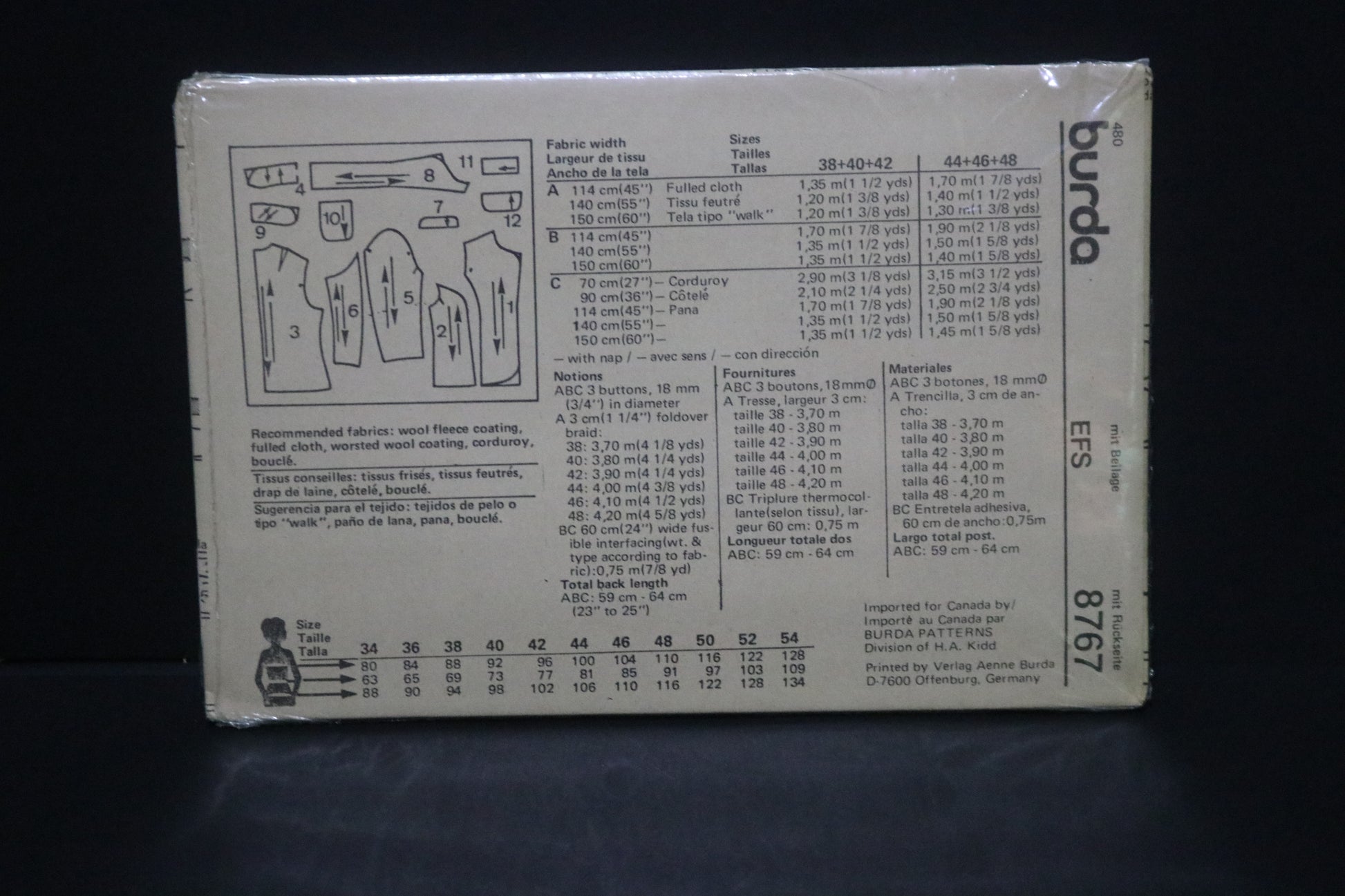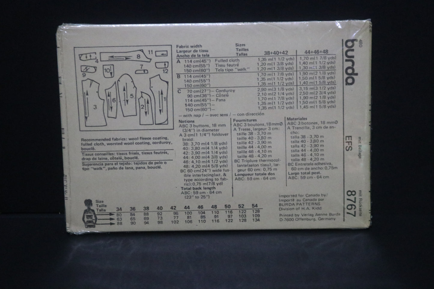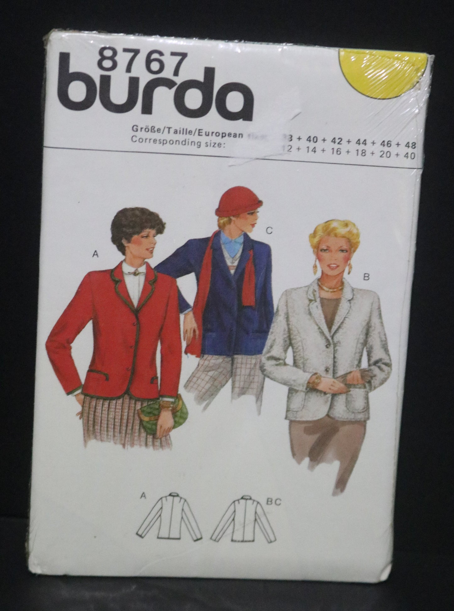 Burda 8767 Misses Jacket Sewing Pattern - UNCUT - Size 12 14 16 18 20 40