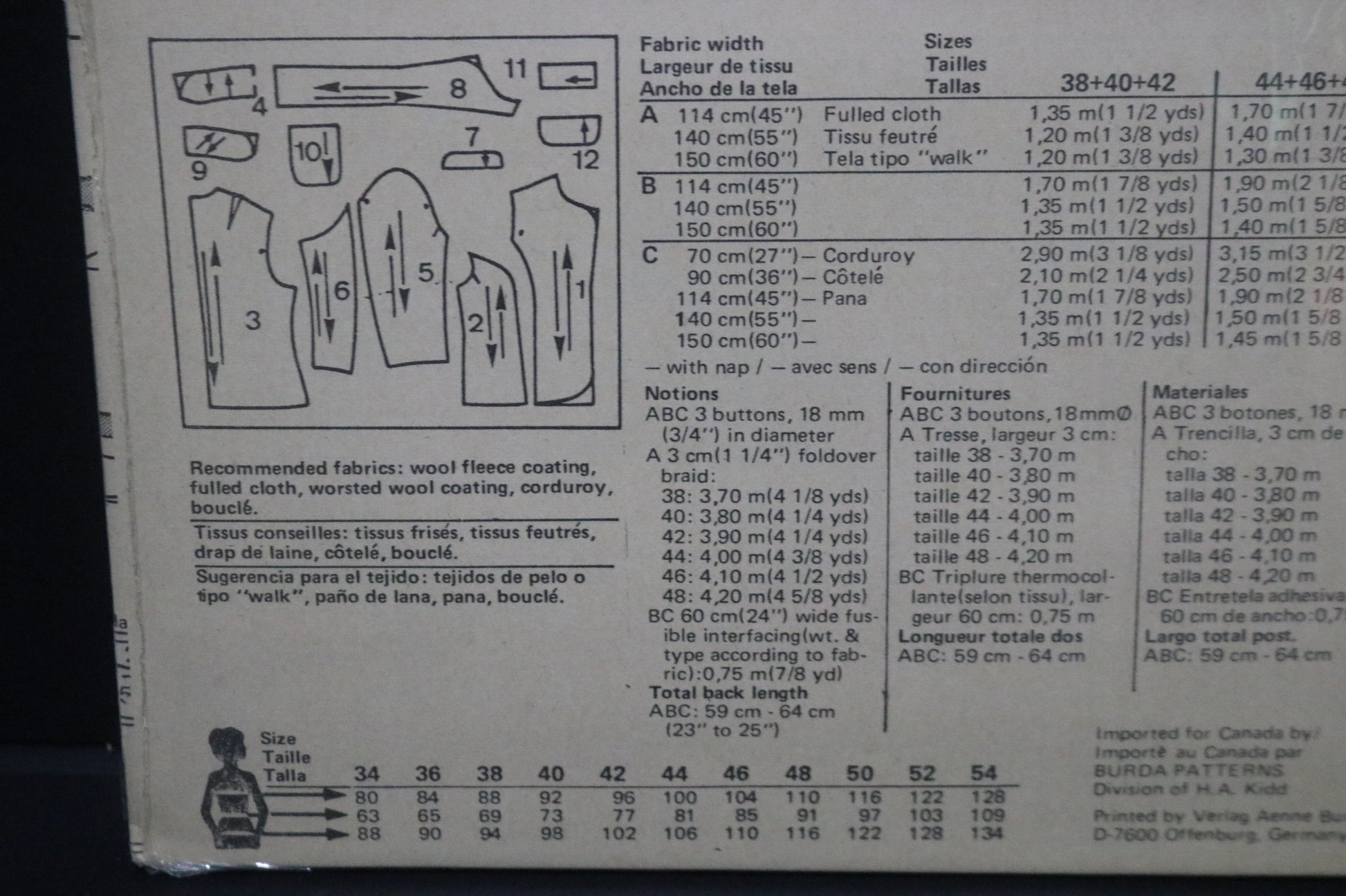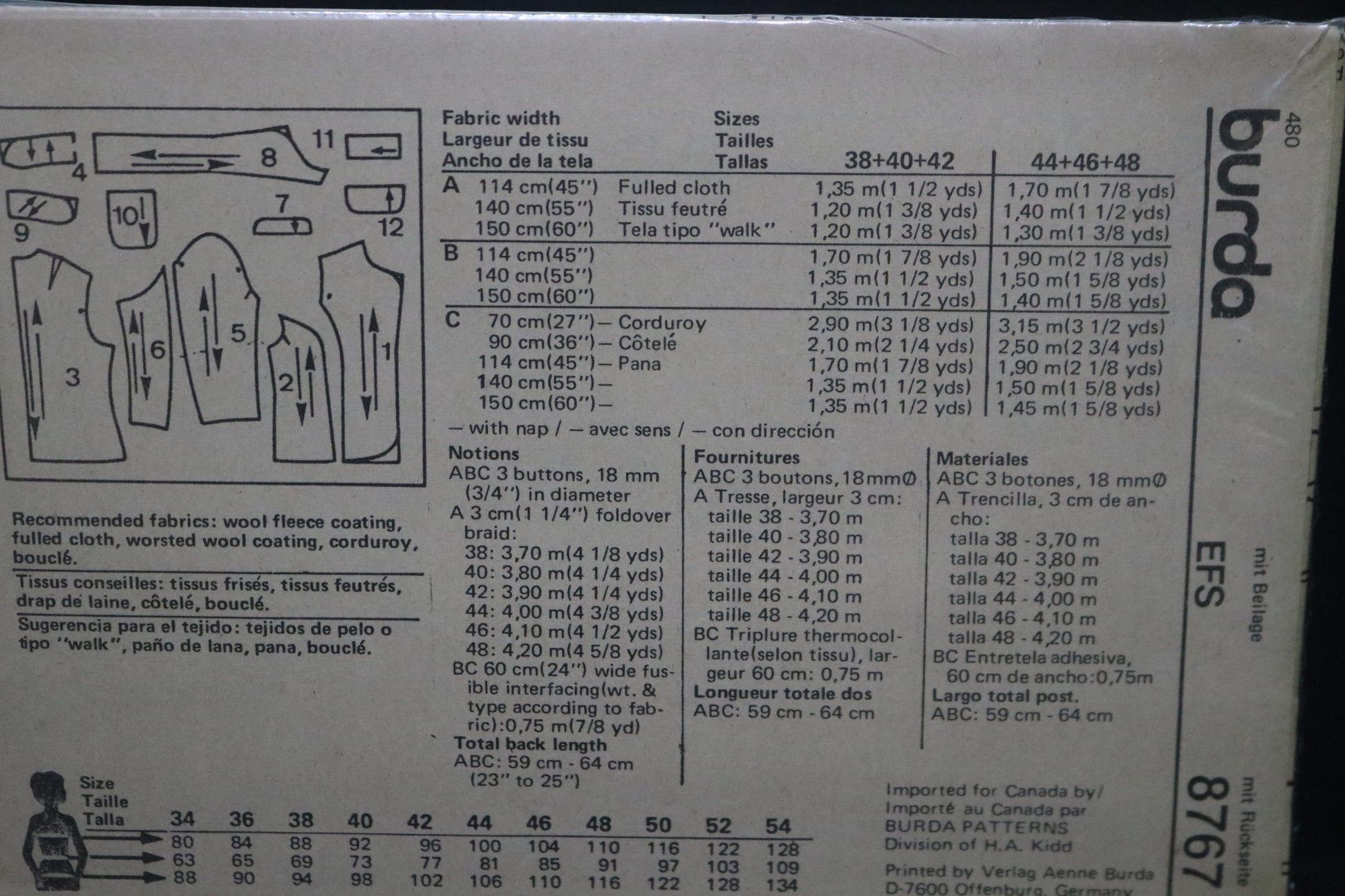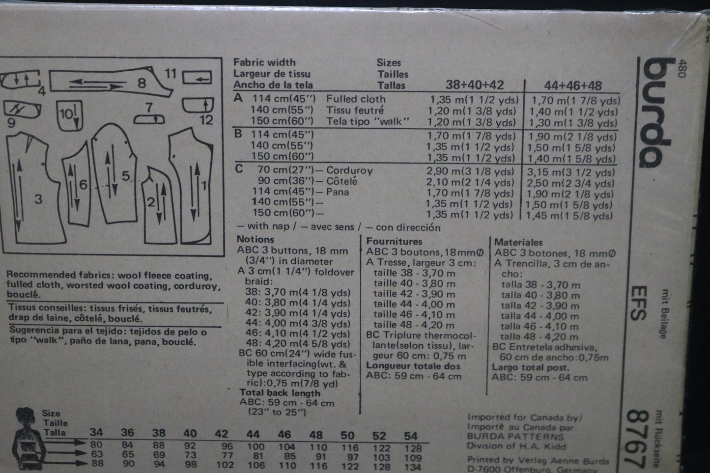 Burda 8767 Misses Jacket Sewing Pattern - UNCUT - Size 12 14 16 18 20 40