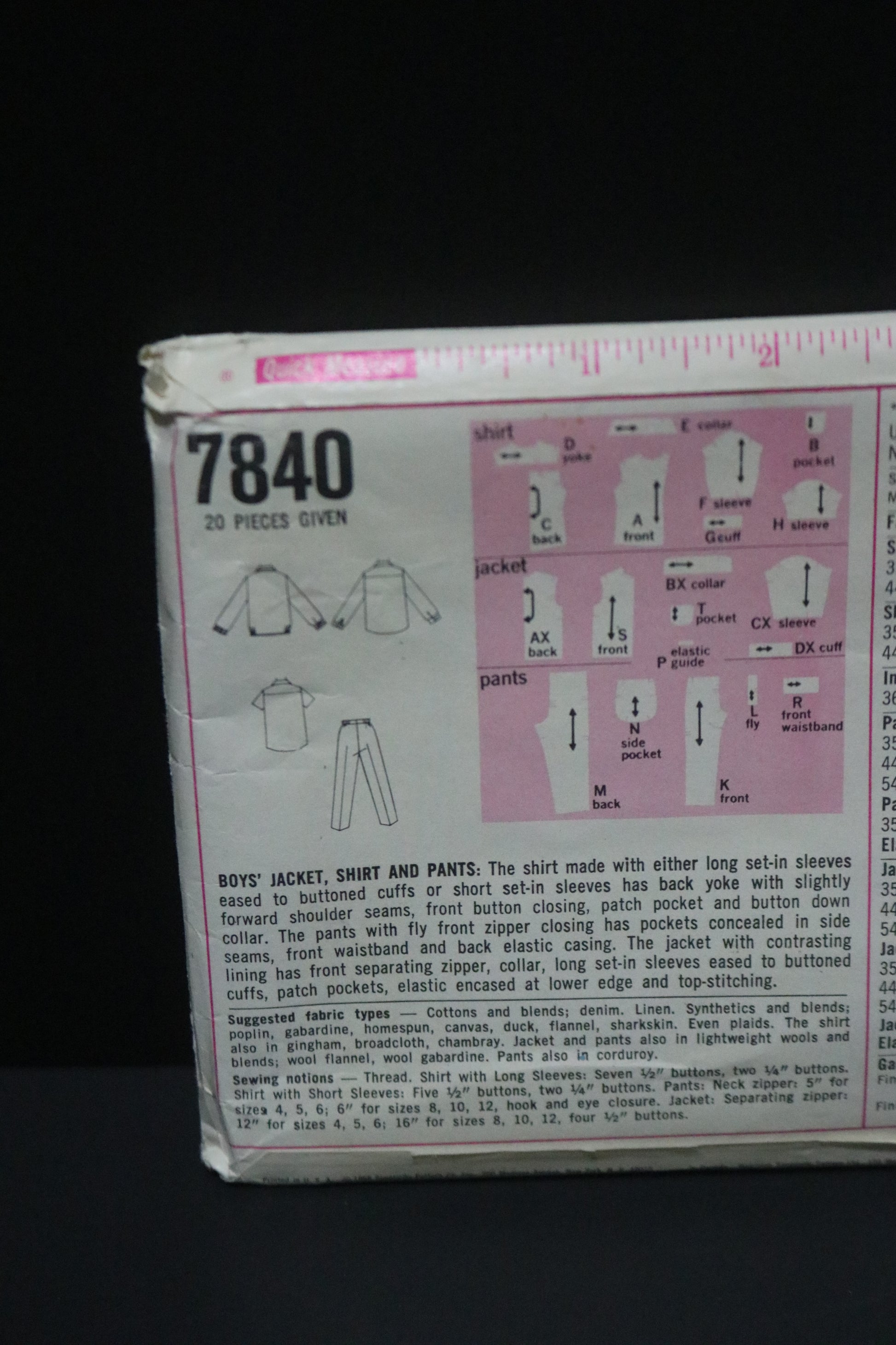 Simplicity 7840 Boys jacket Shirt and Pants Sewing Pattern