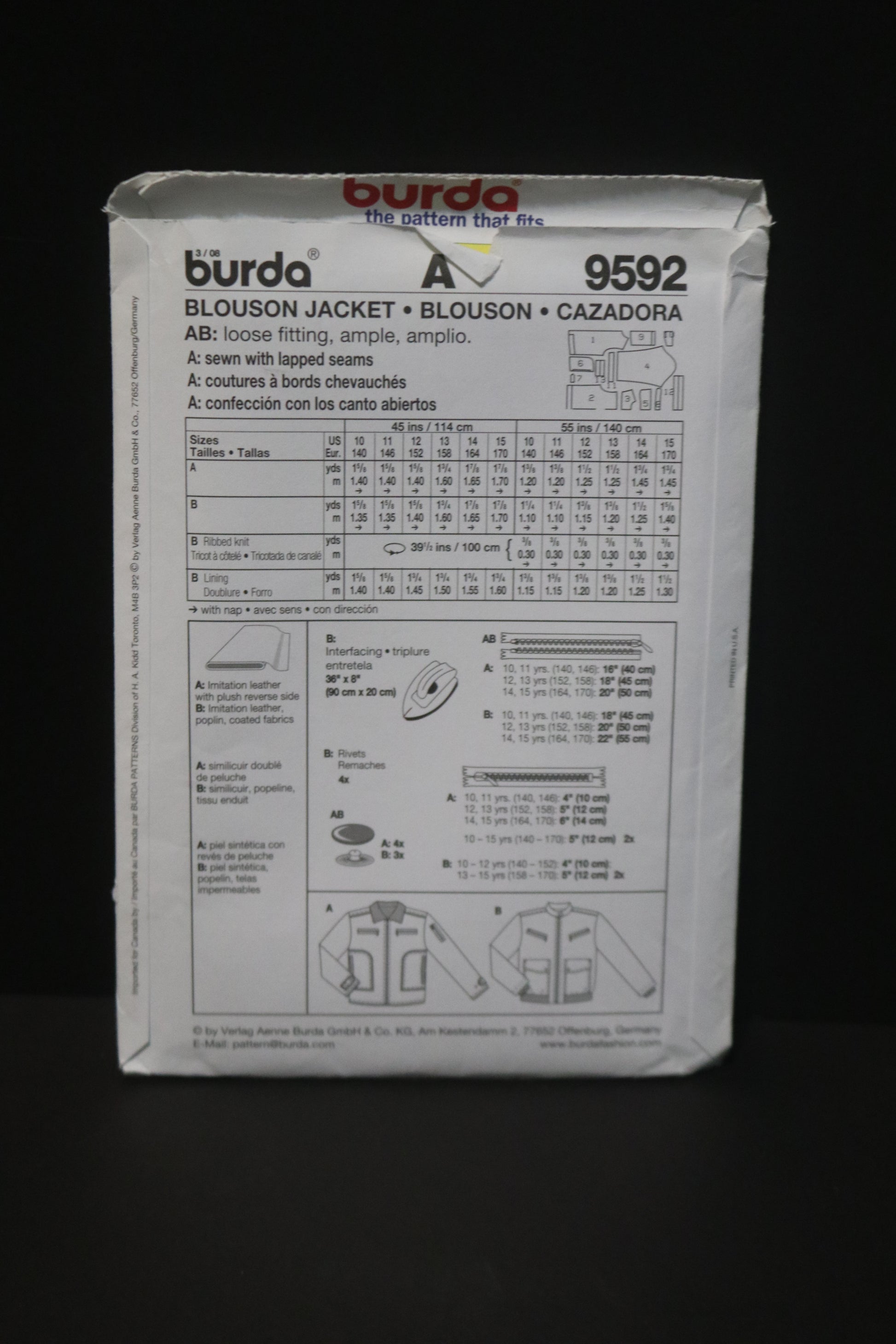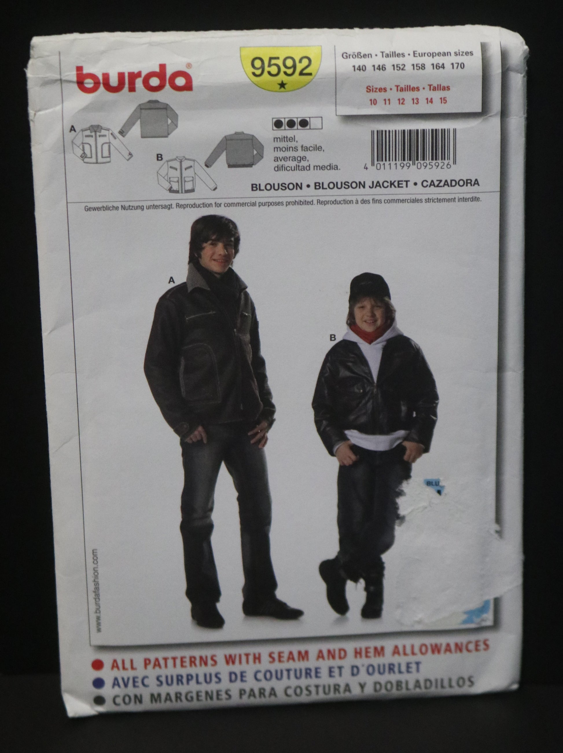 Burda 9592 Boys Teens Blouson Jacket Sewing Pattern
