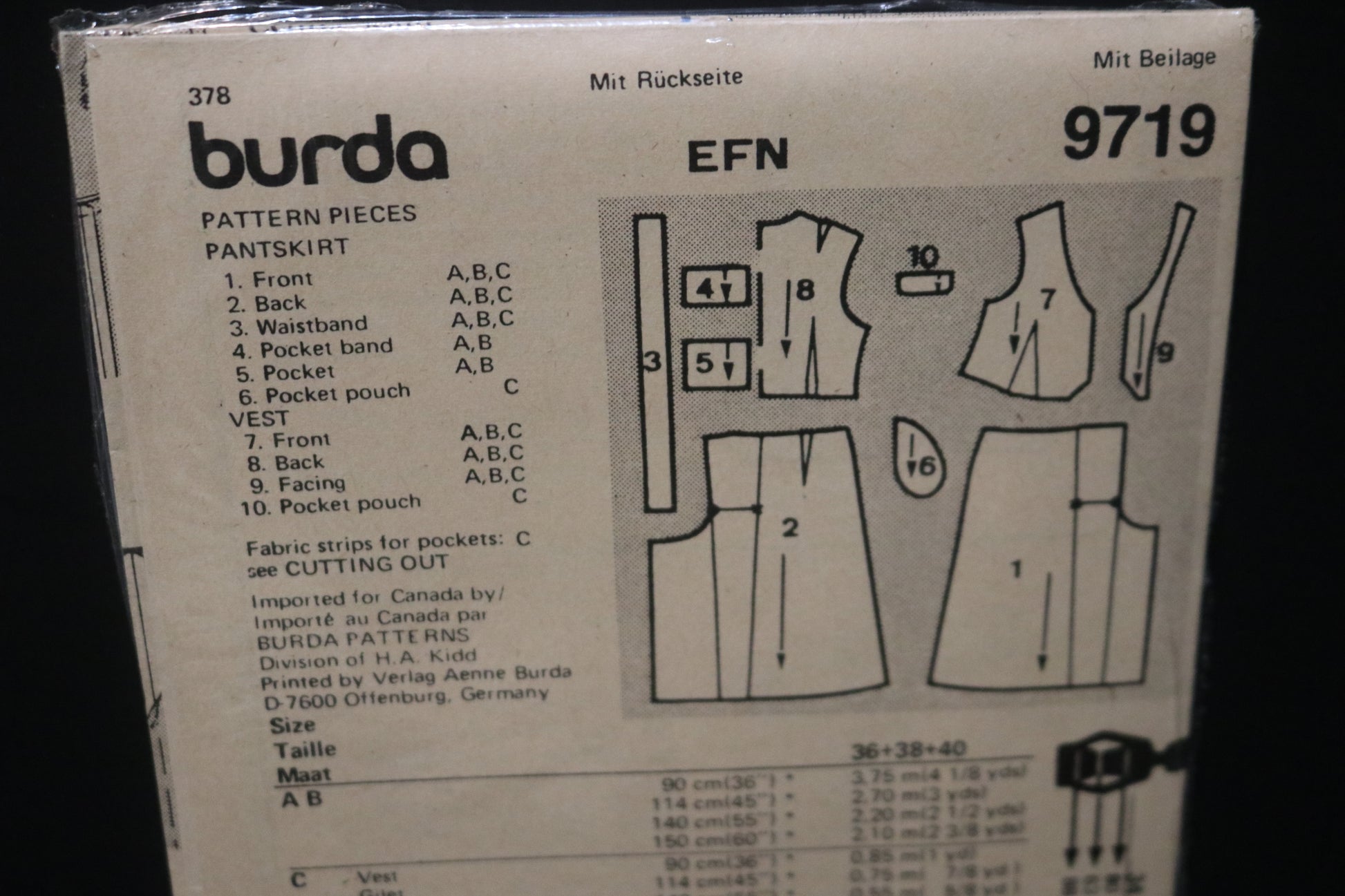 Burda 9719 Misses Vest and Pantskirt Sewing Pattern - UNCUT Size 10 12 14
