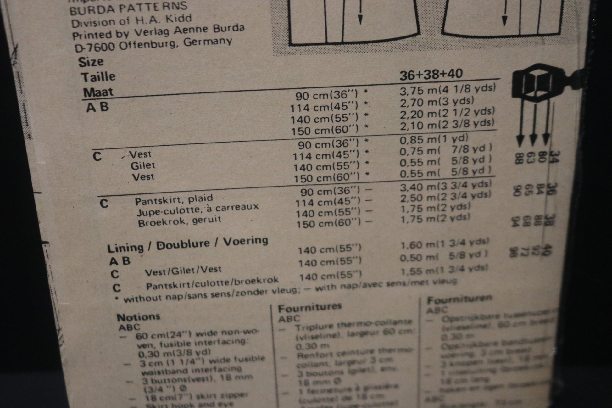 Burda 9719 Misses Vest and Pantskirt Sewing Pattern