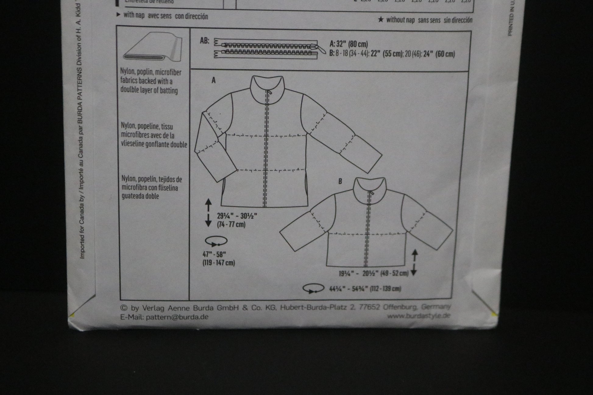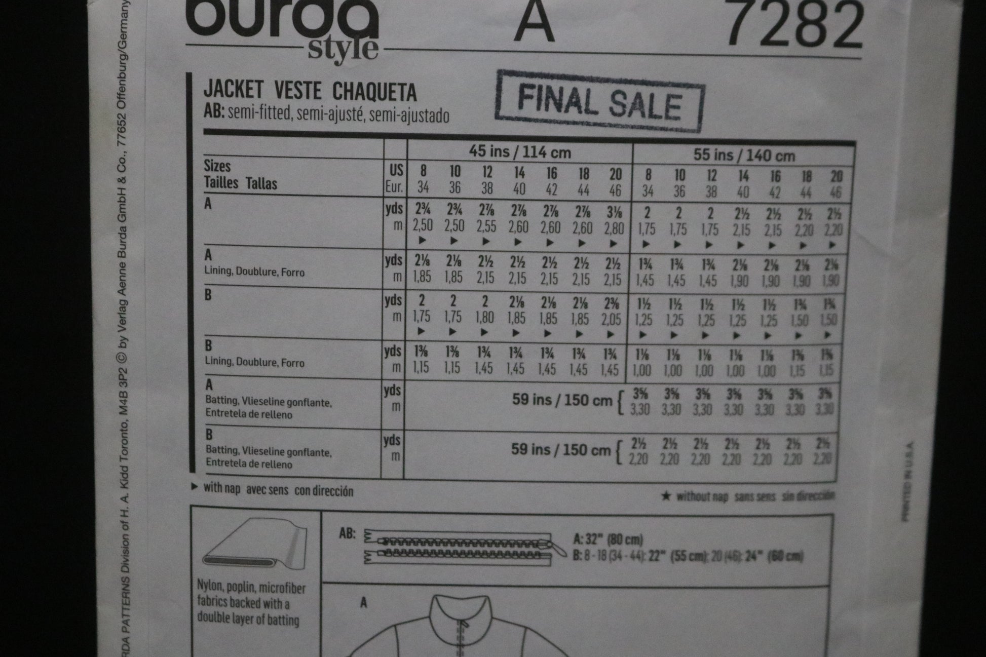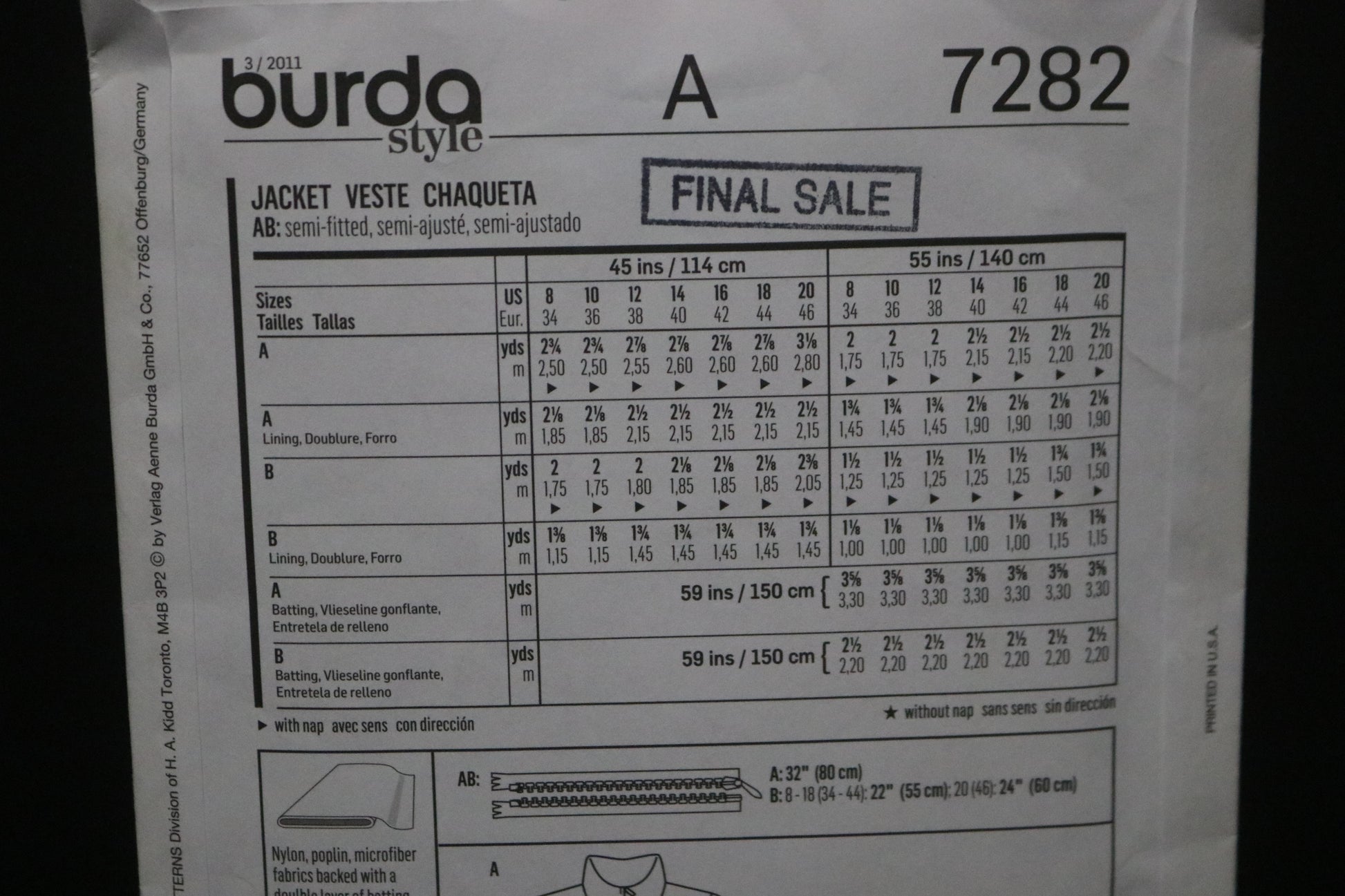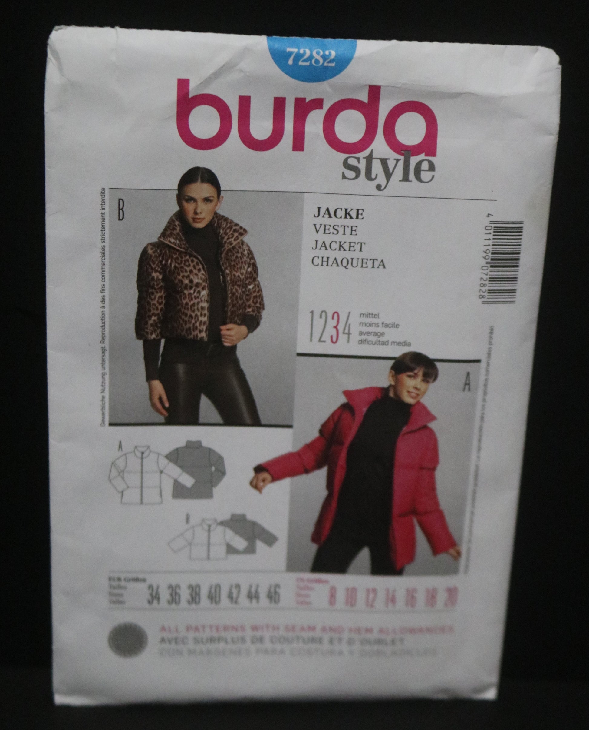 Burda Style 7282 Misses Jacket Sewing Pattern - UNCUT Size 8 10 12 14 16 18 20