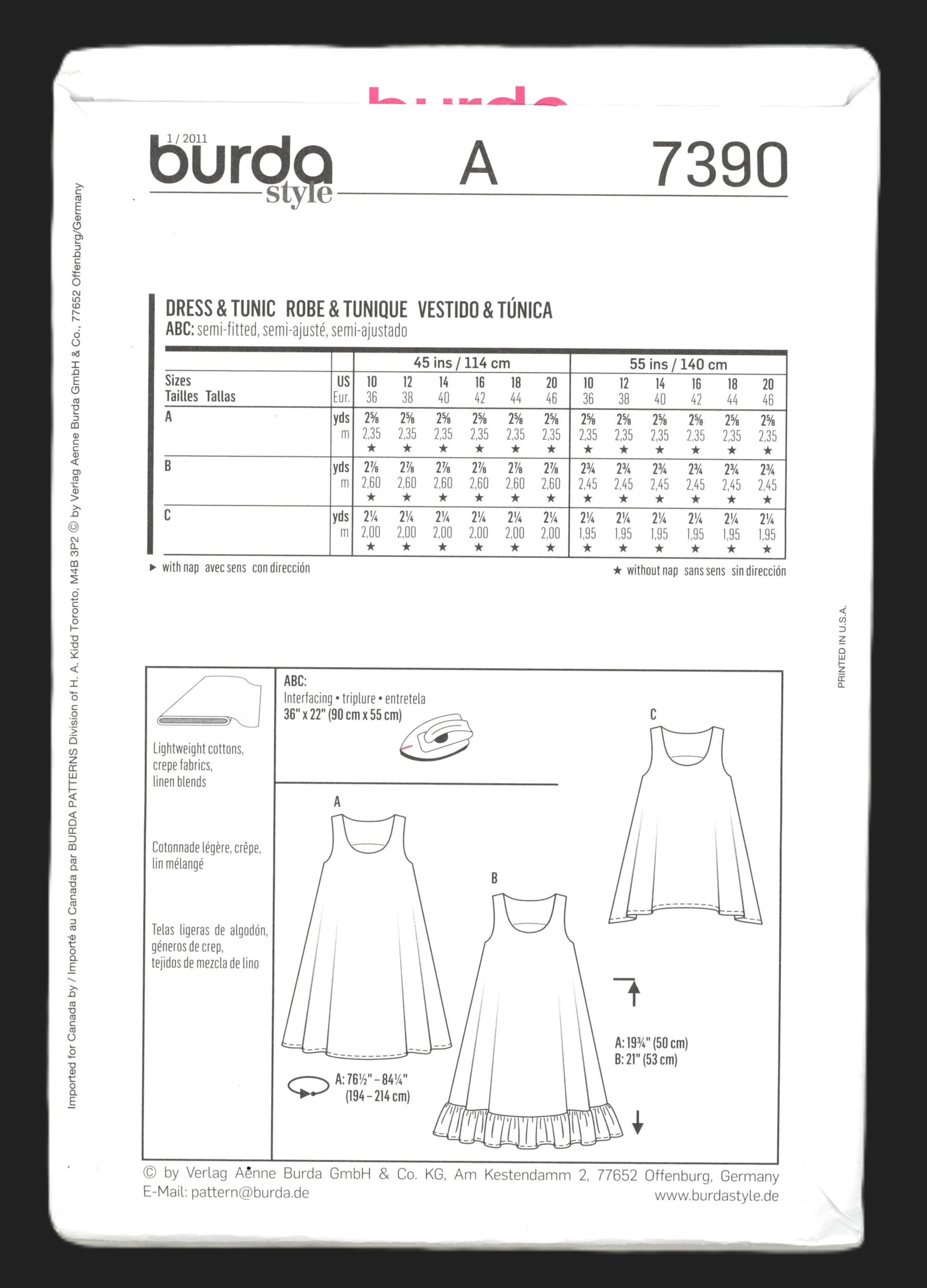 Burda Young 7390 Dress and Tunic Sewing Pattern