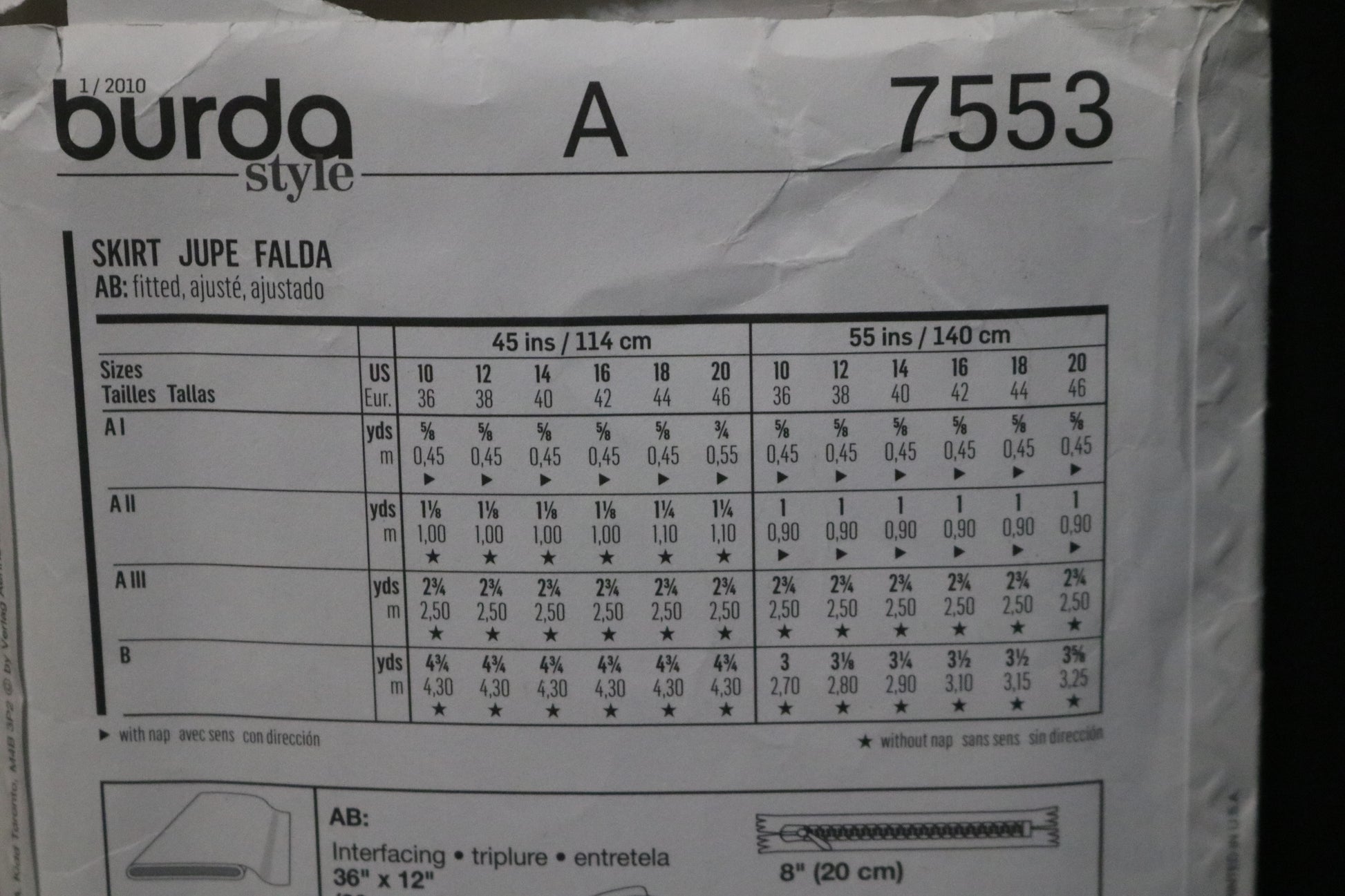 Burda Young 7553 Skirt Sewing Pattern - UNCUT - Size 10 12 14 16 18 20