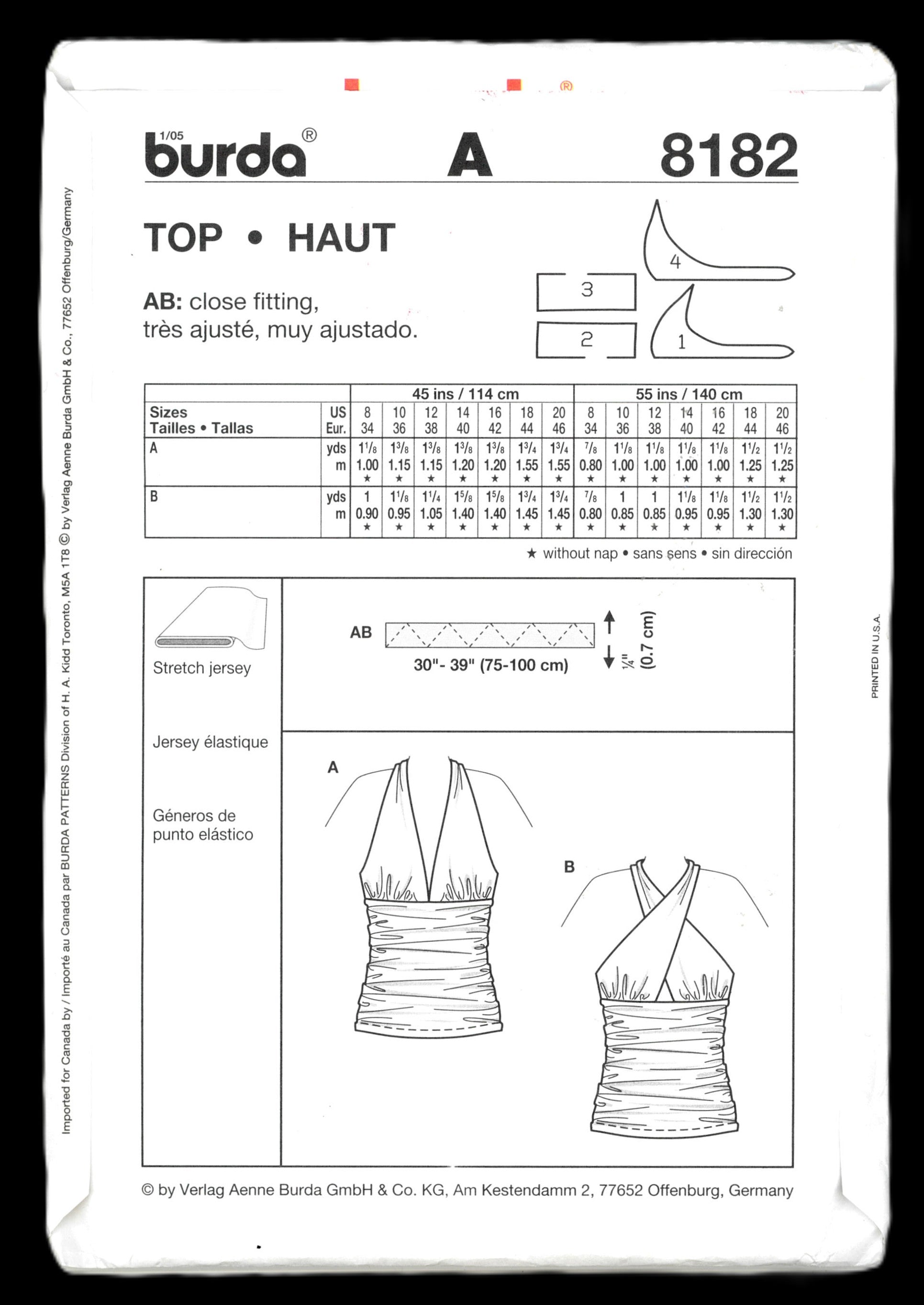 Burda Young 8182 Top Sewing Pattern - UNCUT - Size 8 10 12 14 16 18