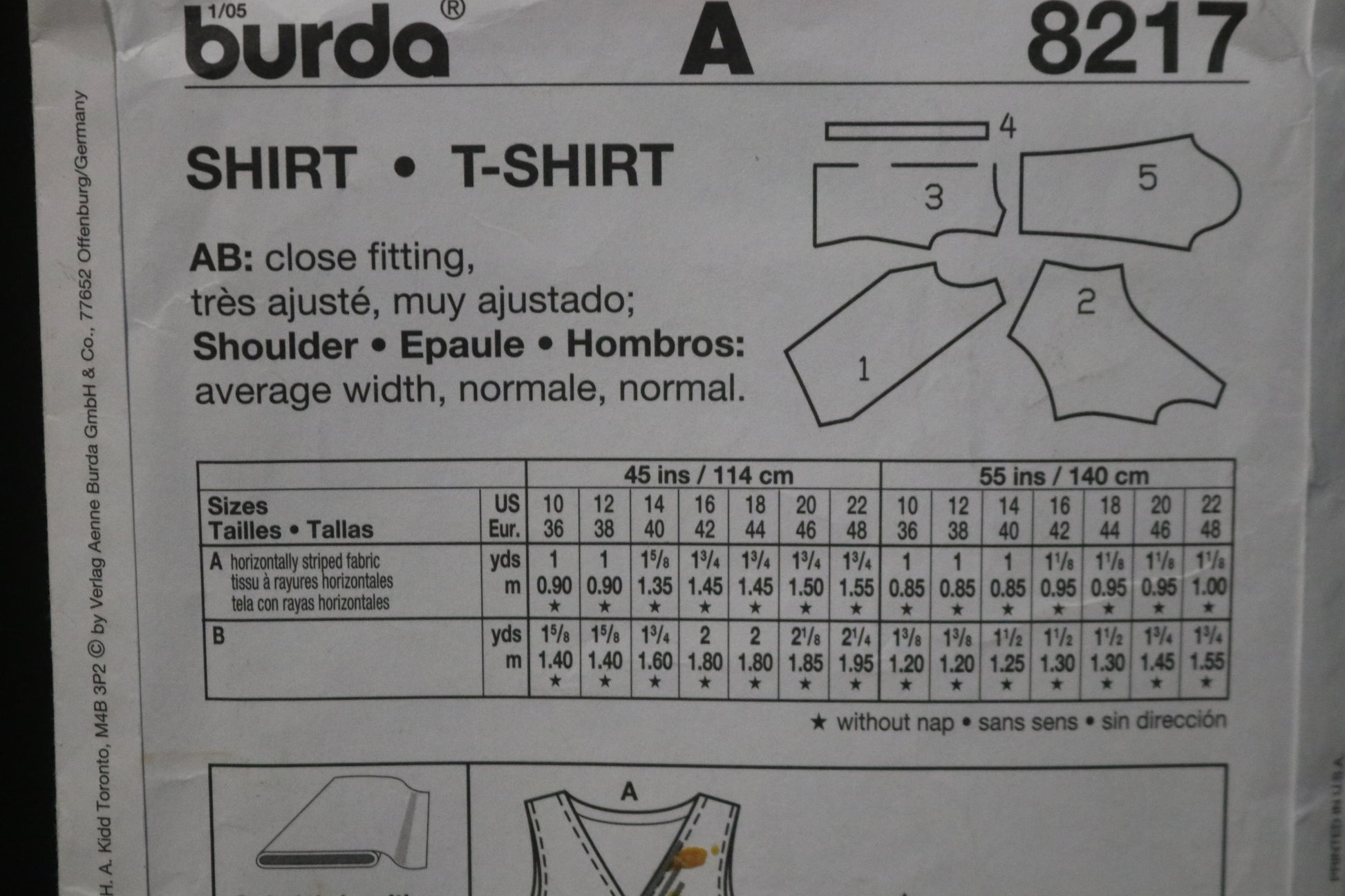 Burda 8217 Misses T Shirt Sewing Pattern - UNCUT - Size 10 12 14 16 18 20 22