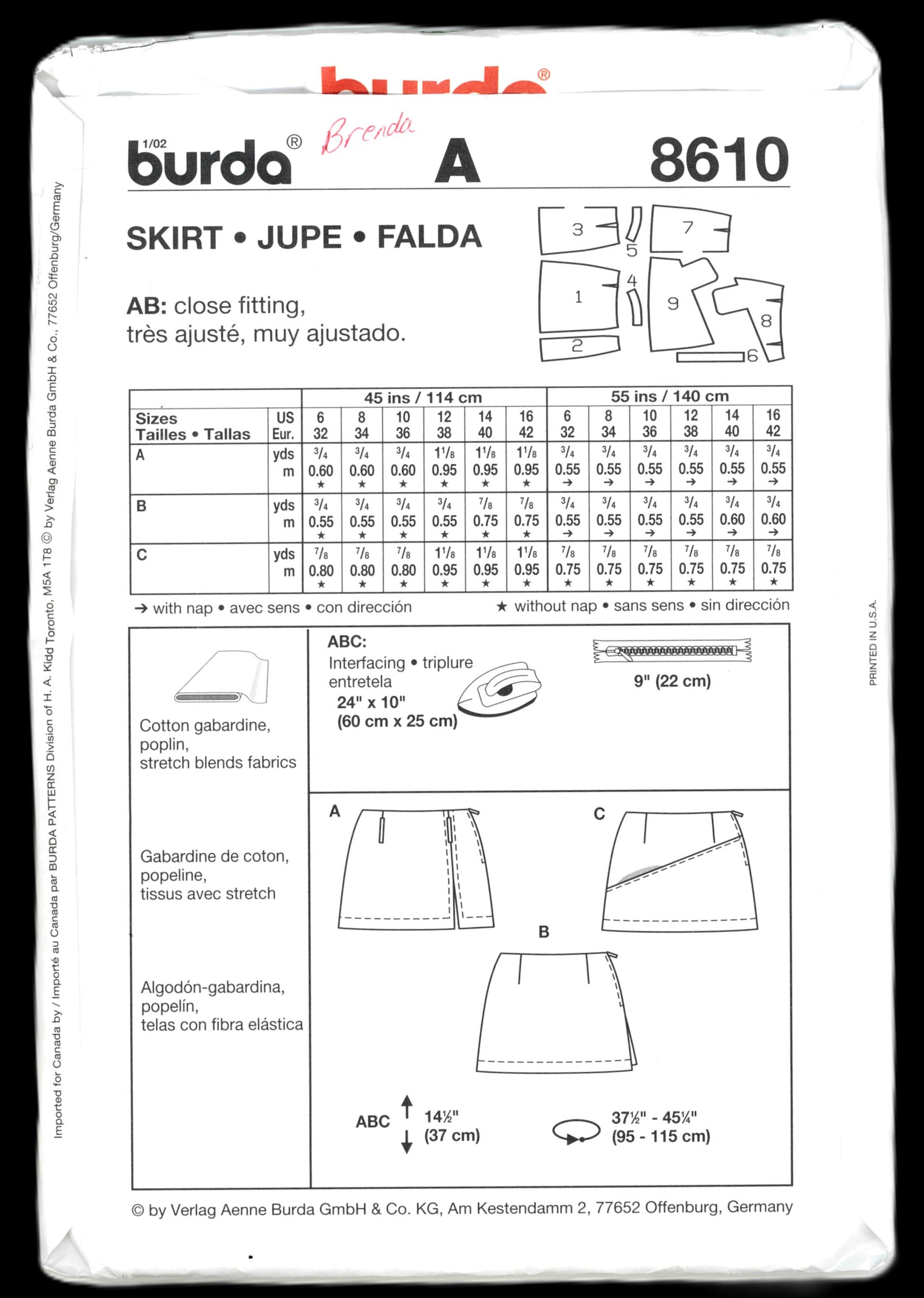 Burda Young 8610 Skirt Sewing Pattern