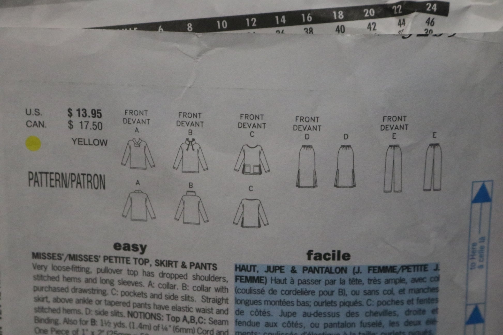 Butterick 3205 Misses / Misses Petite Top Skirt and Pants Sewing Pattern