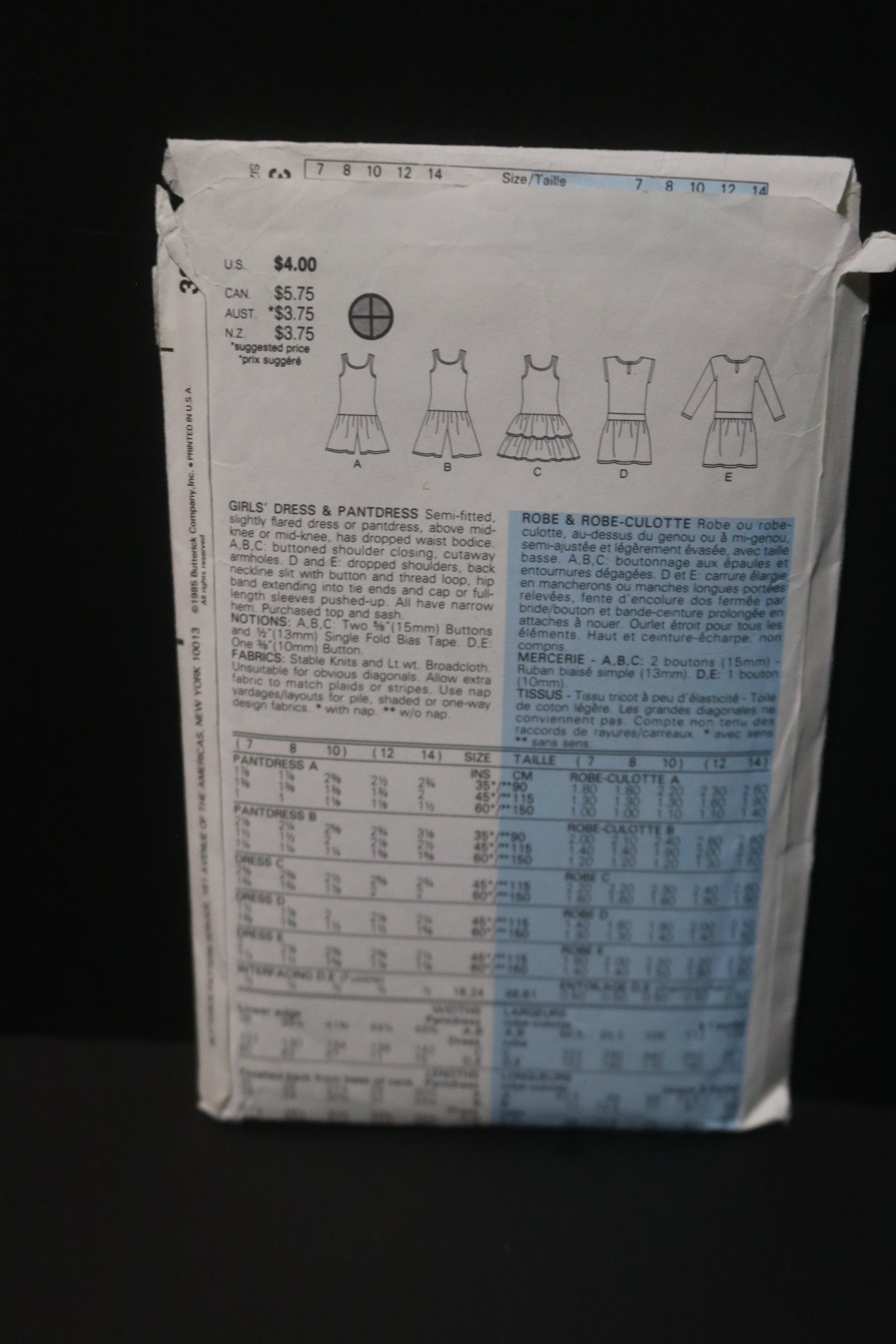 Butterick 3310 Girls Dress and Pantdress Sewing Pattern - UNCUT Size 12 -14