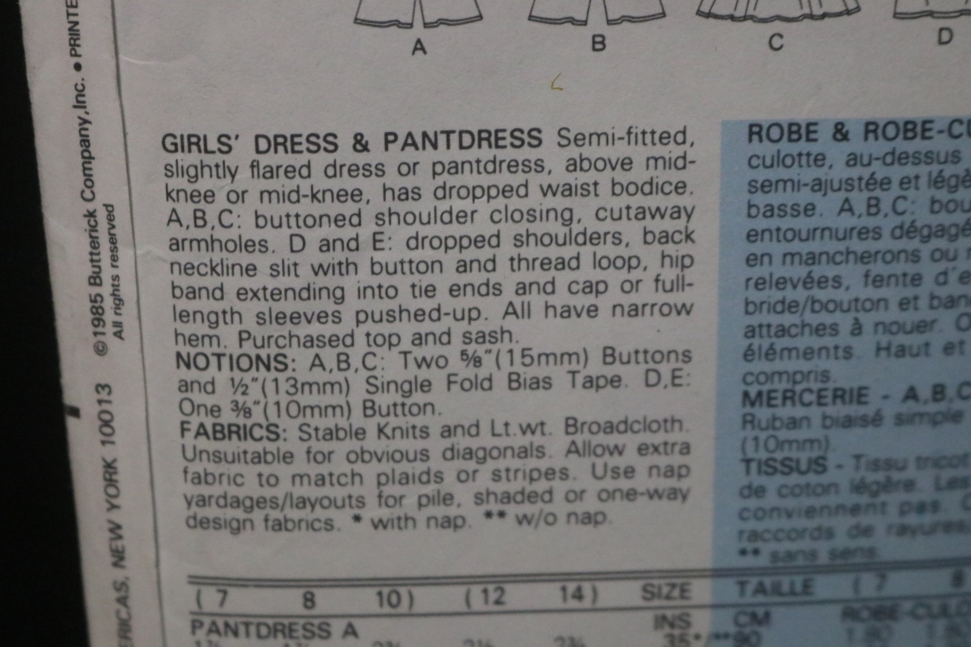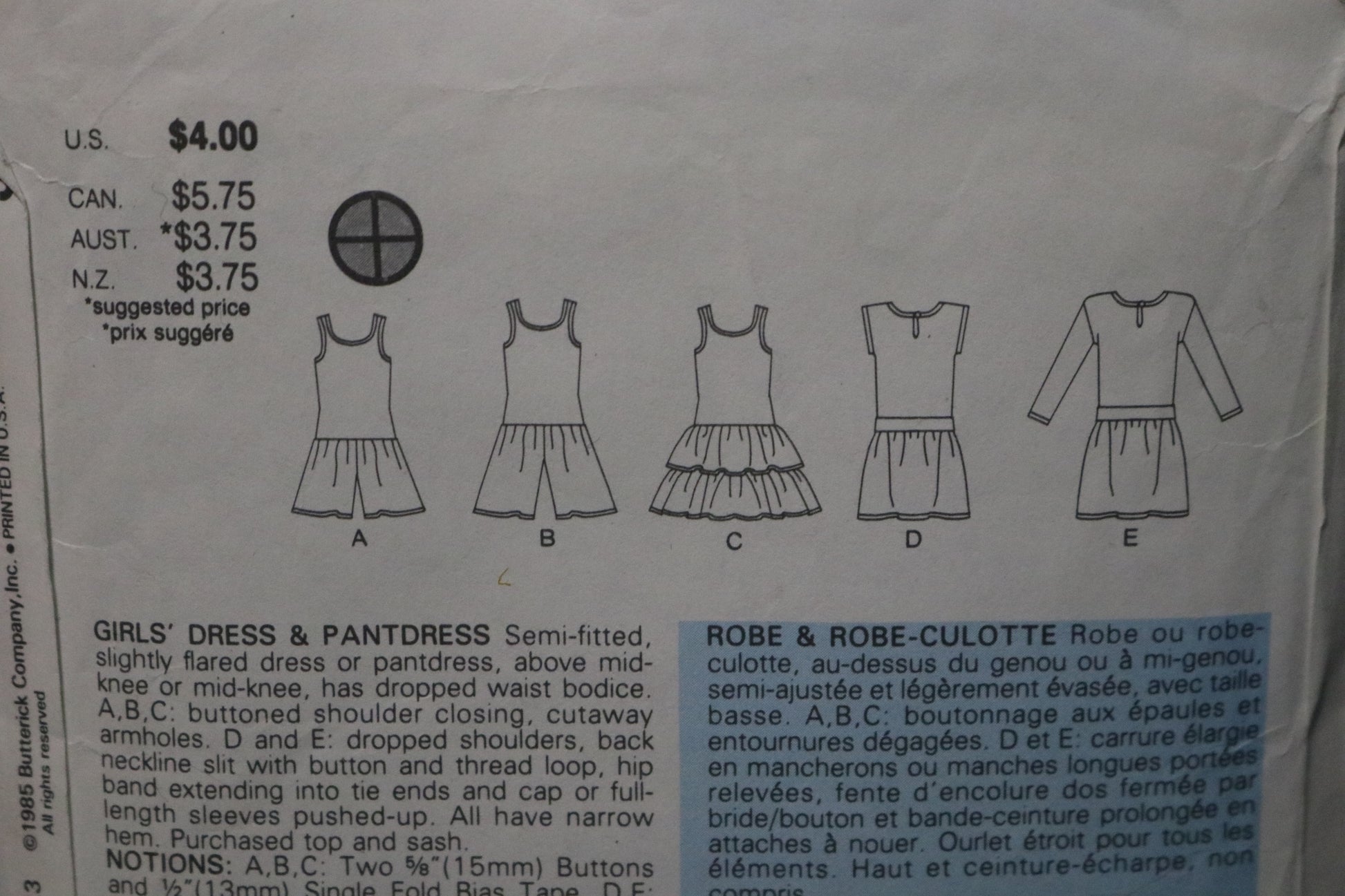 Butterick 3310 Girls Dress and Pantdress Sewing Pattern