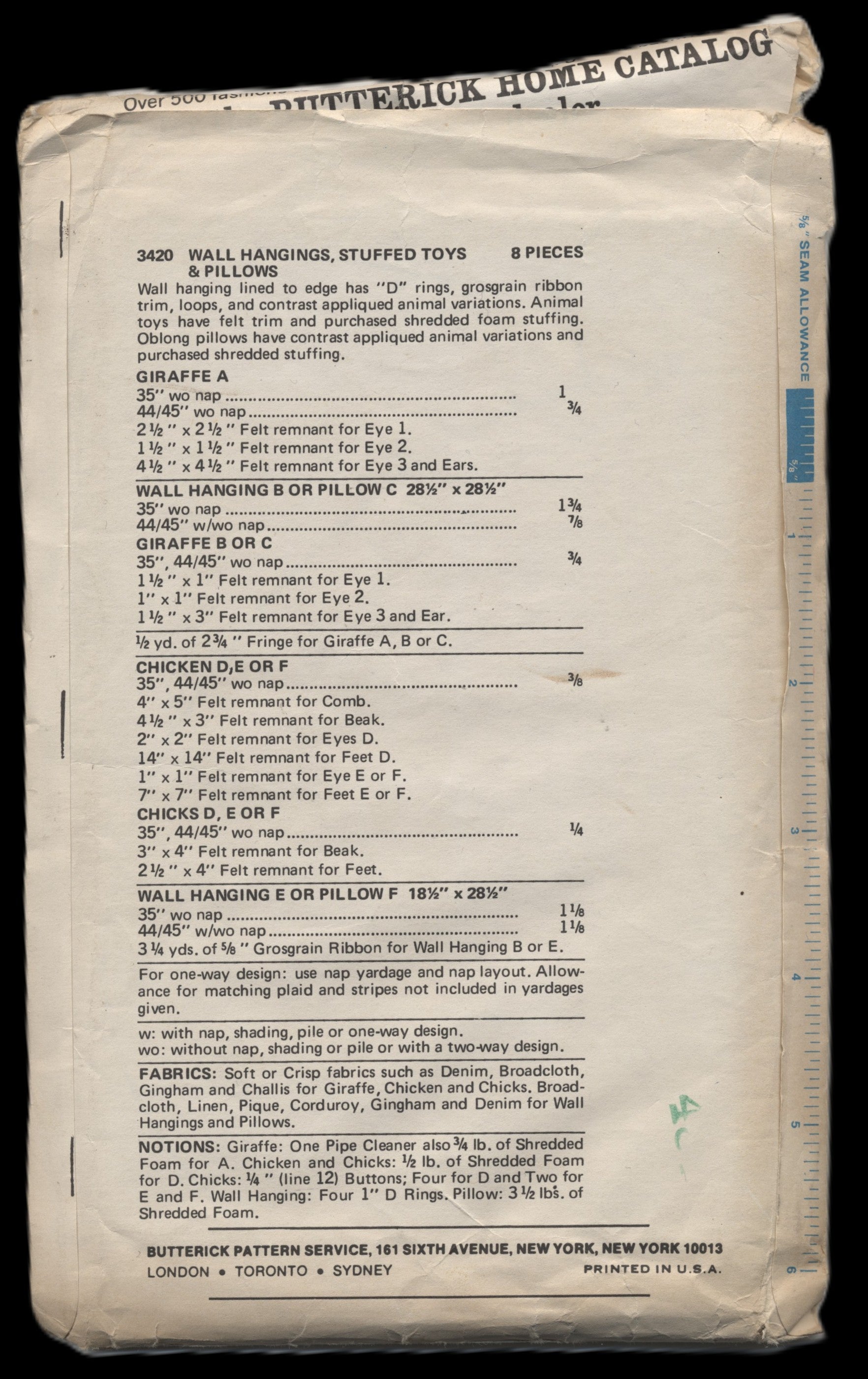 Butterick 3420 Wall Hangings, Stuffed Toys & Pillows Sewing Pattern
