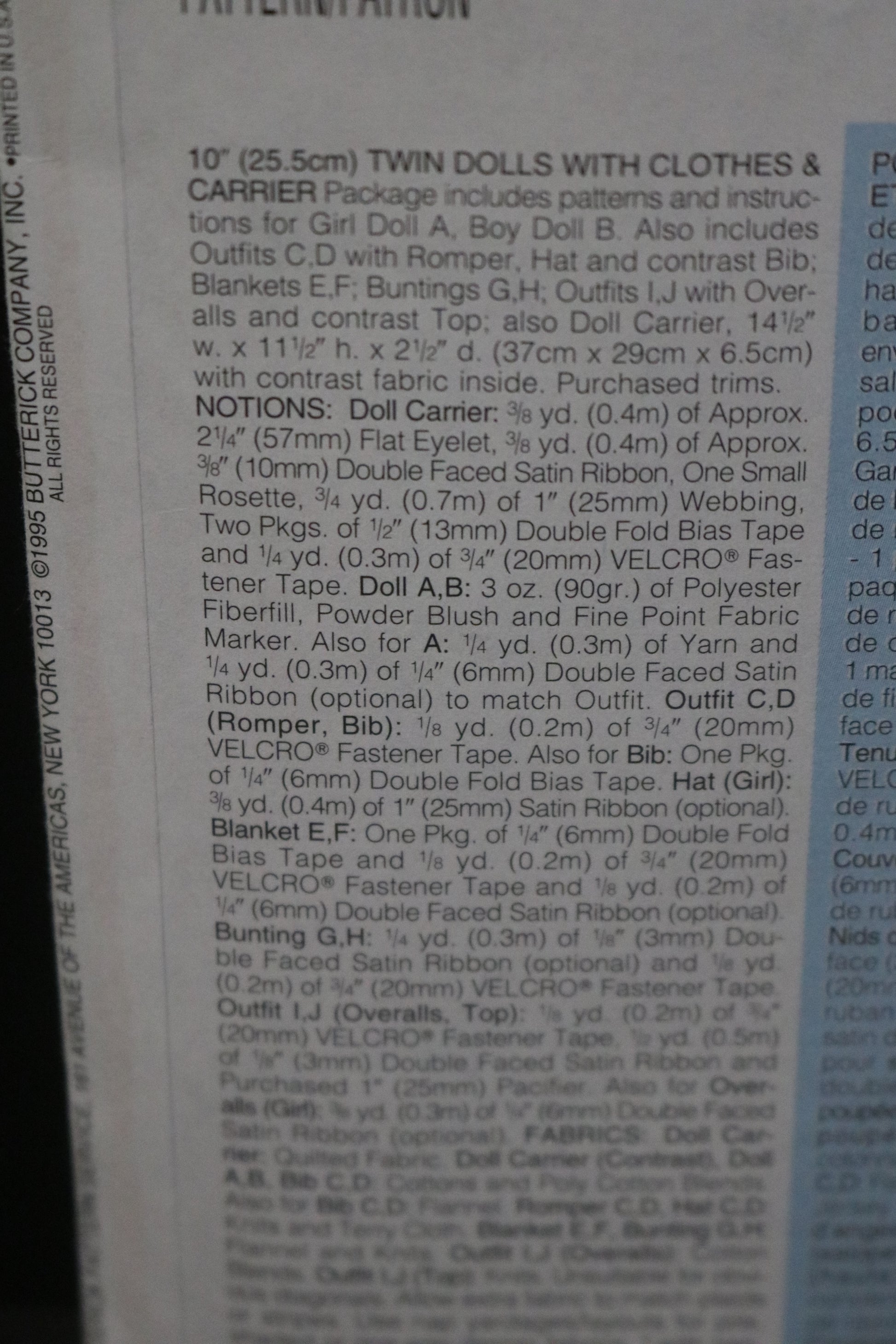 Butterick 4027 10" Twin Dolls with Clothes and Carrier Sewing Pattern