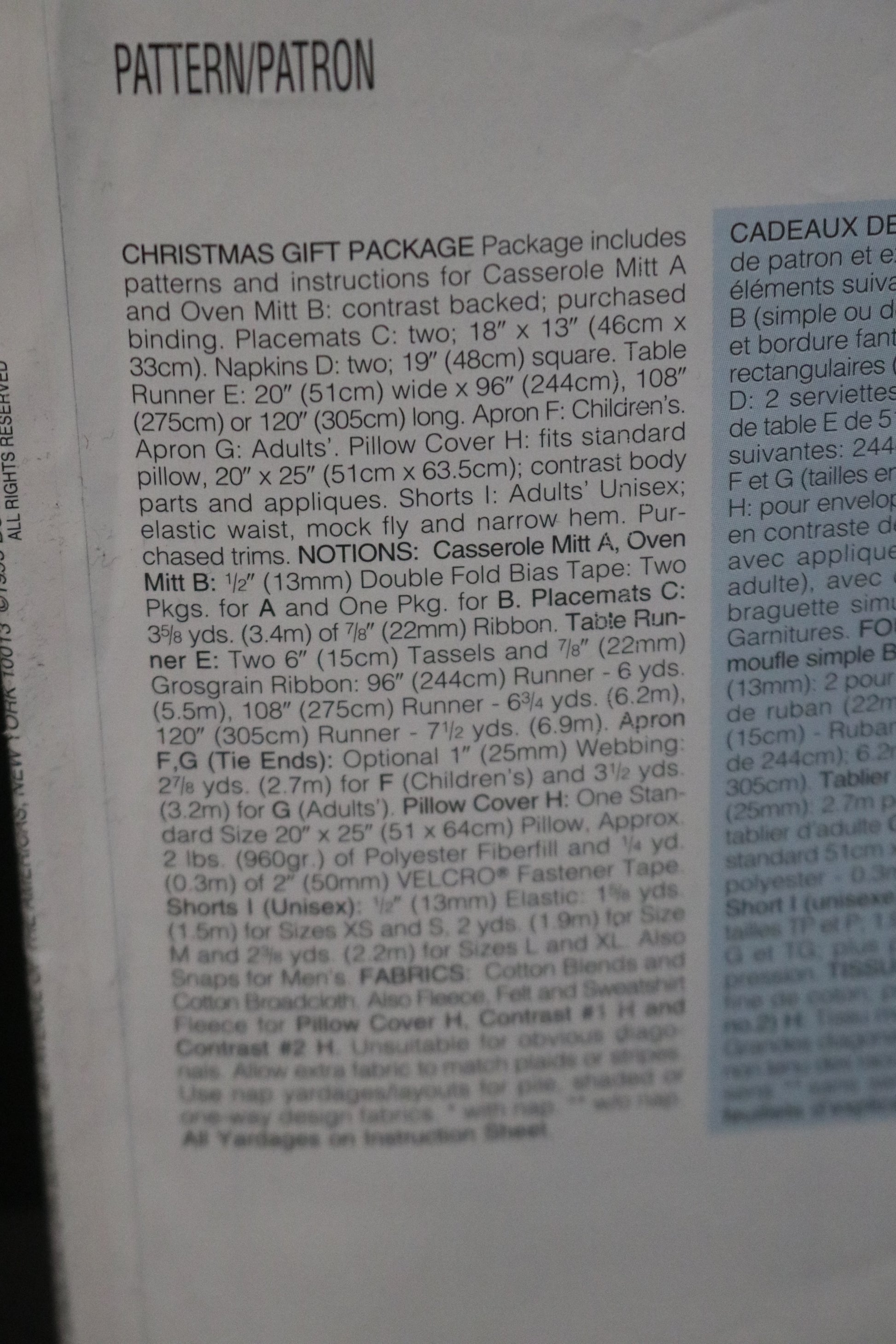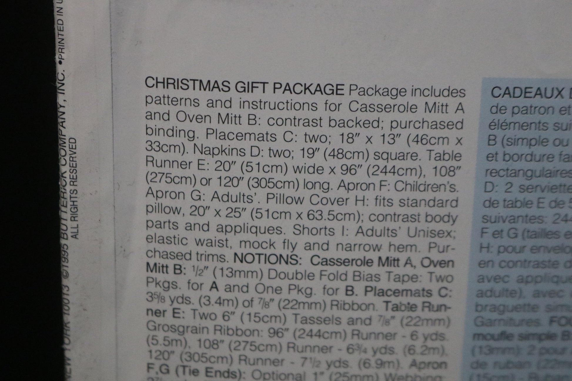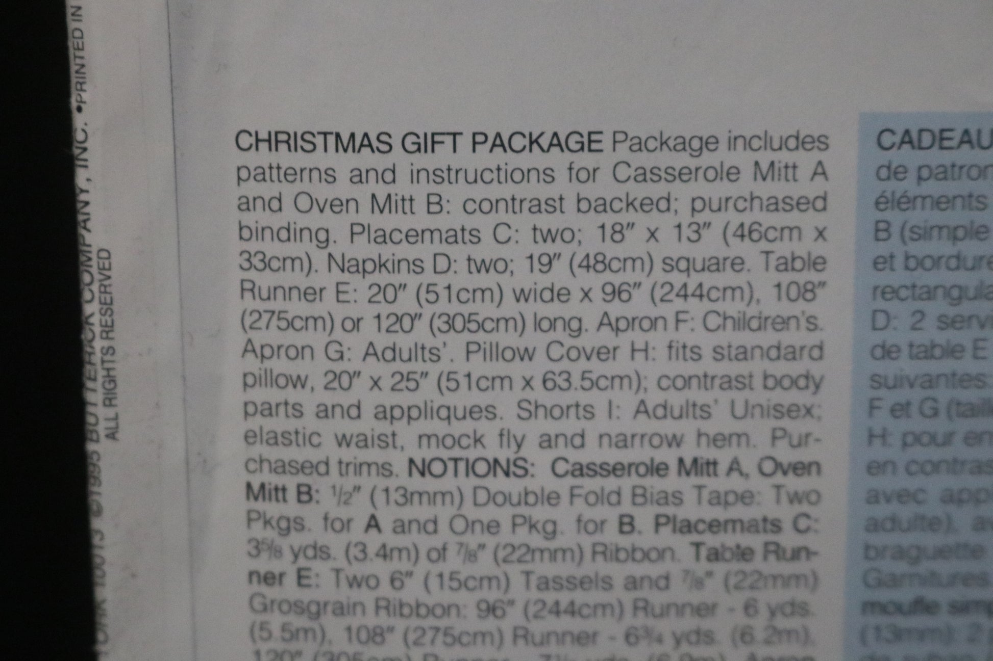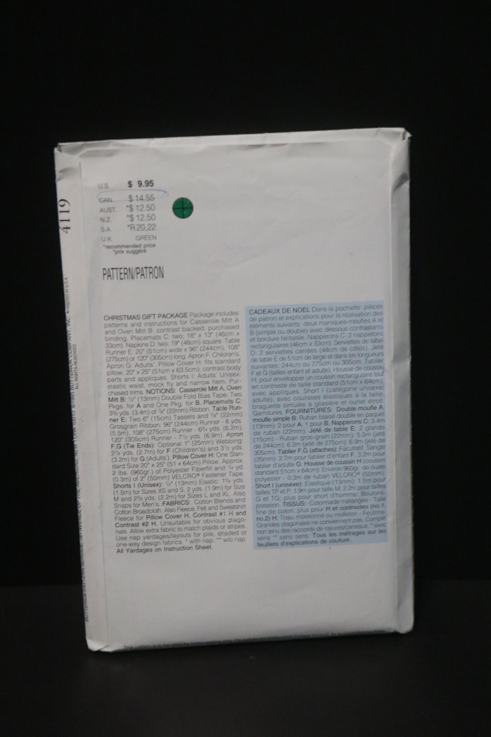 Butterick 4119 Christmas Gift Package Sewing Pattern - UNCUT - Apron, Oven Mitts, Placemat, Boxers and more
