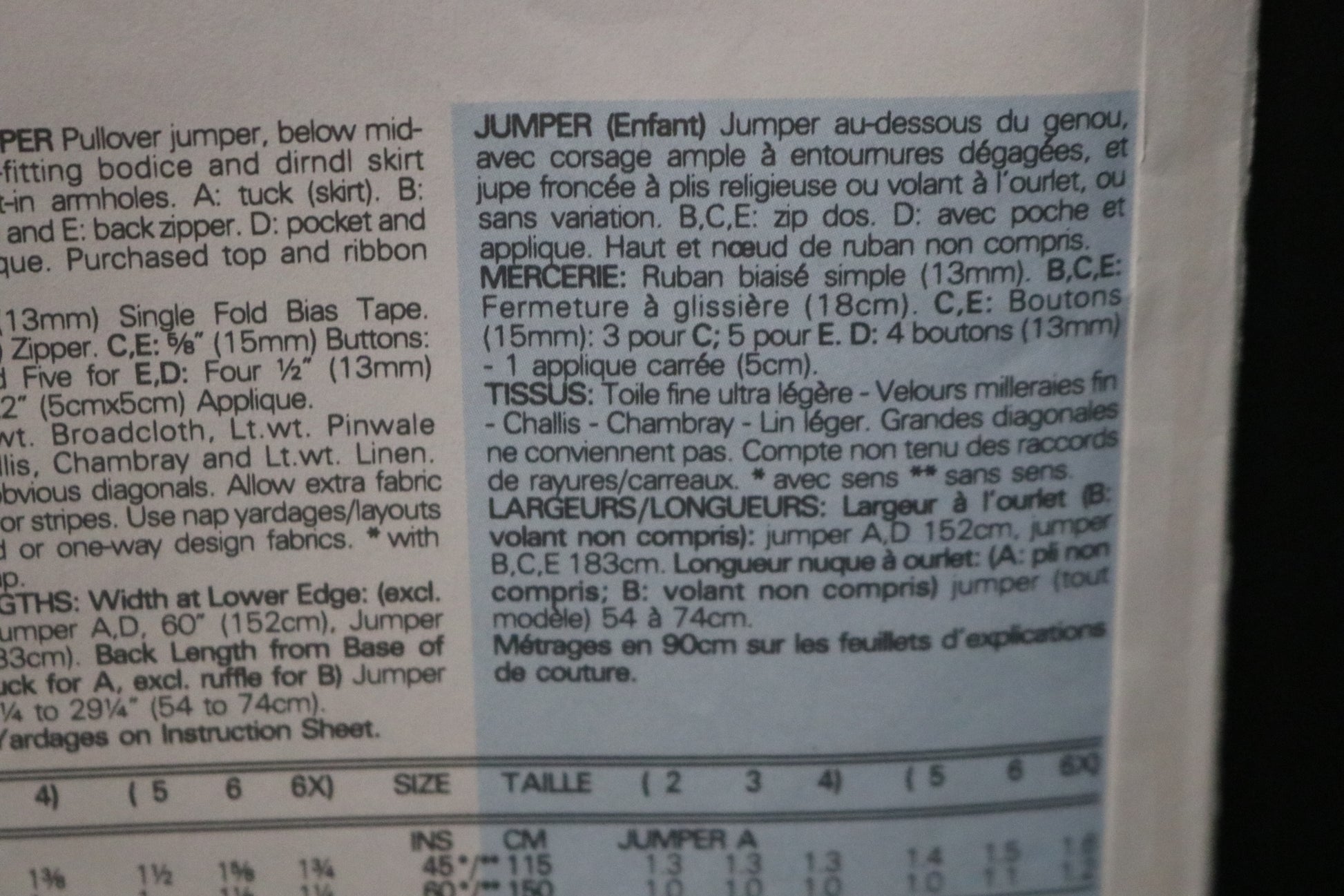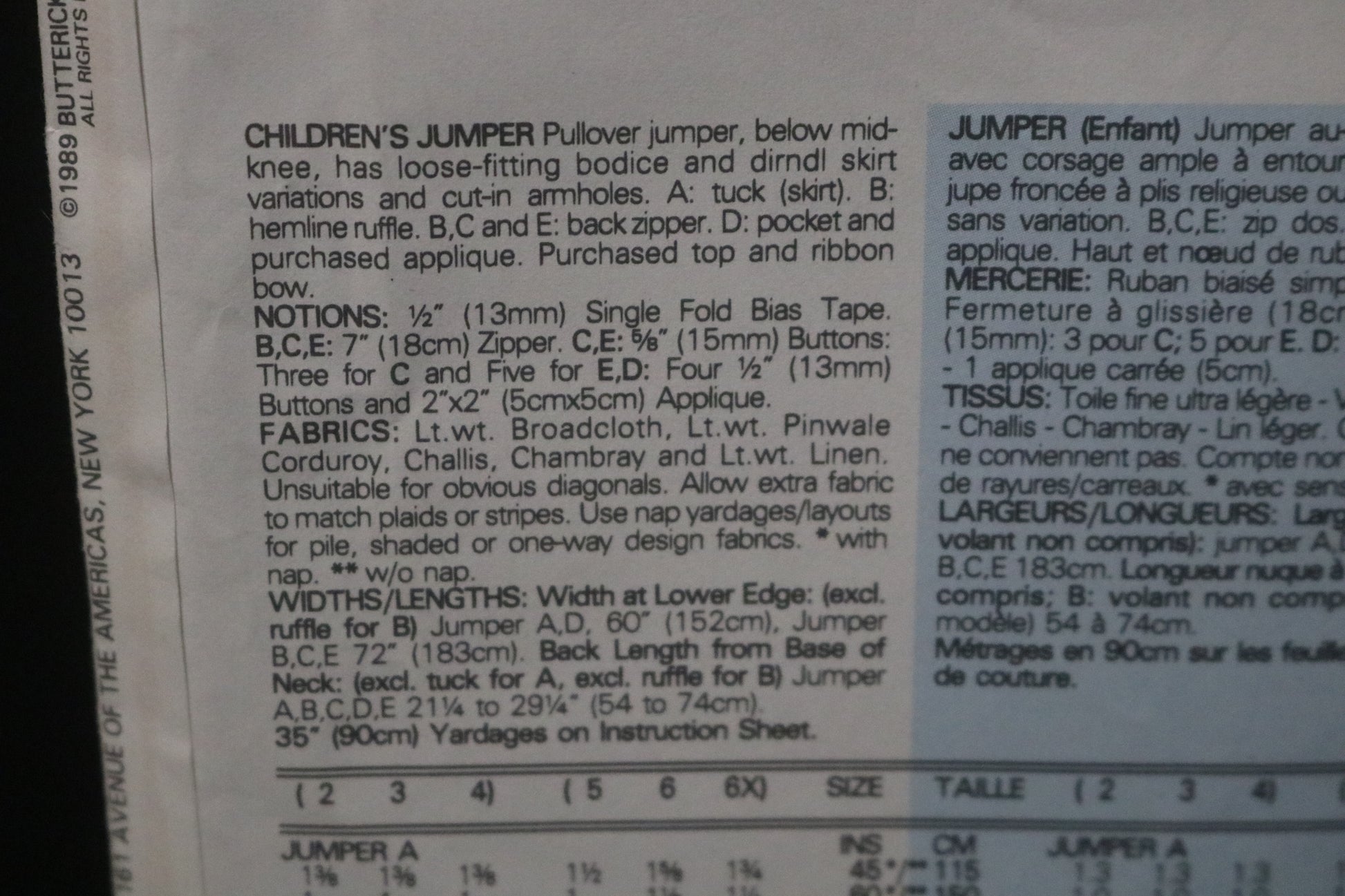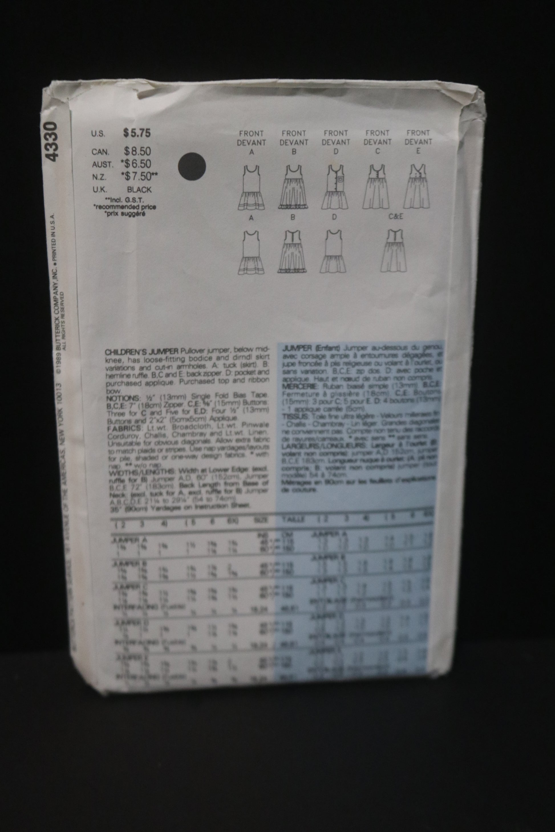 Butterick 4330 Childrens Jumper Sewing Pattern - UNCUT Size 5 6 6X