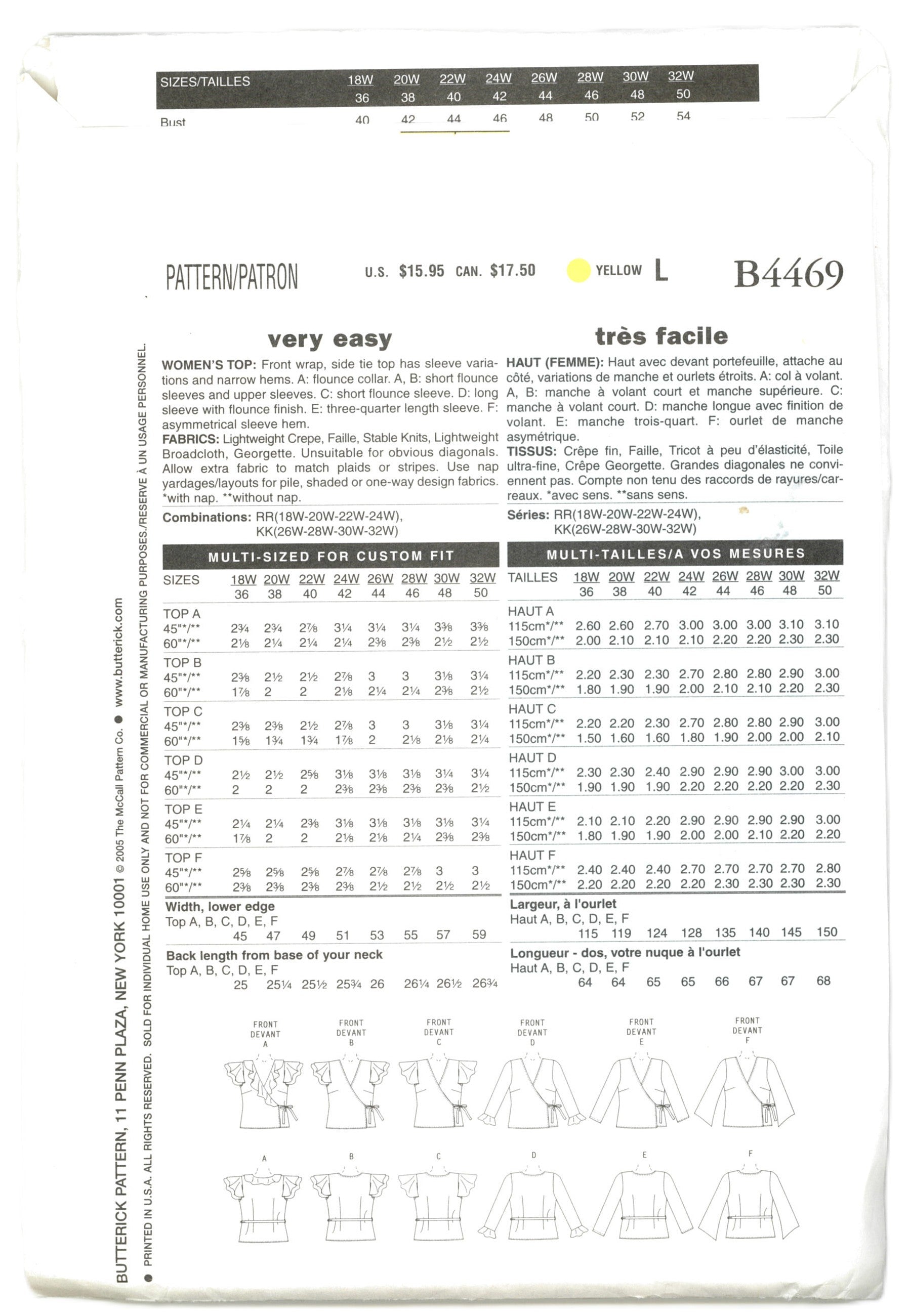 Butterick 4469 Womens Top Sewing Pattern UNCUT Size 18w 20w 22w 24w