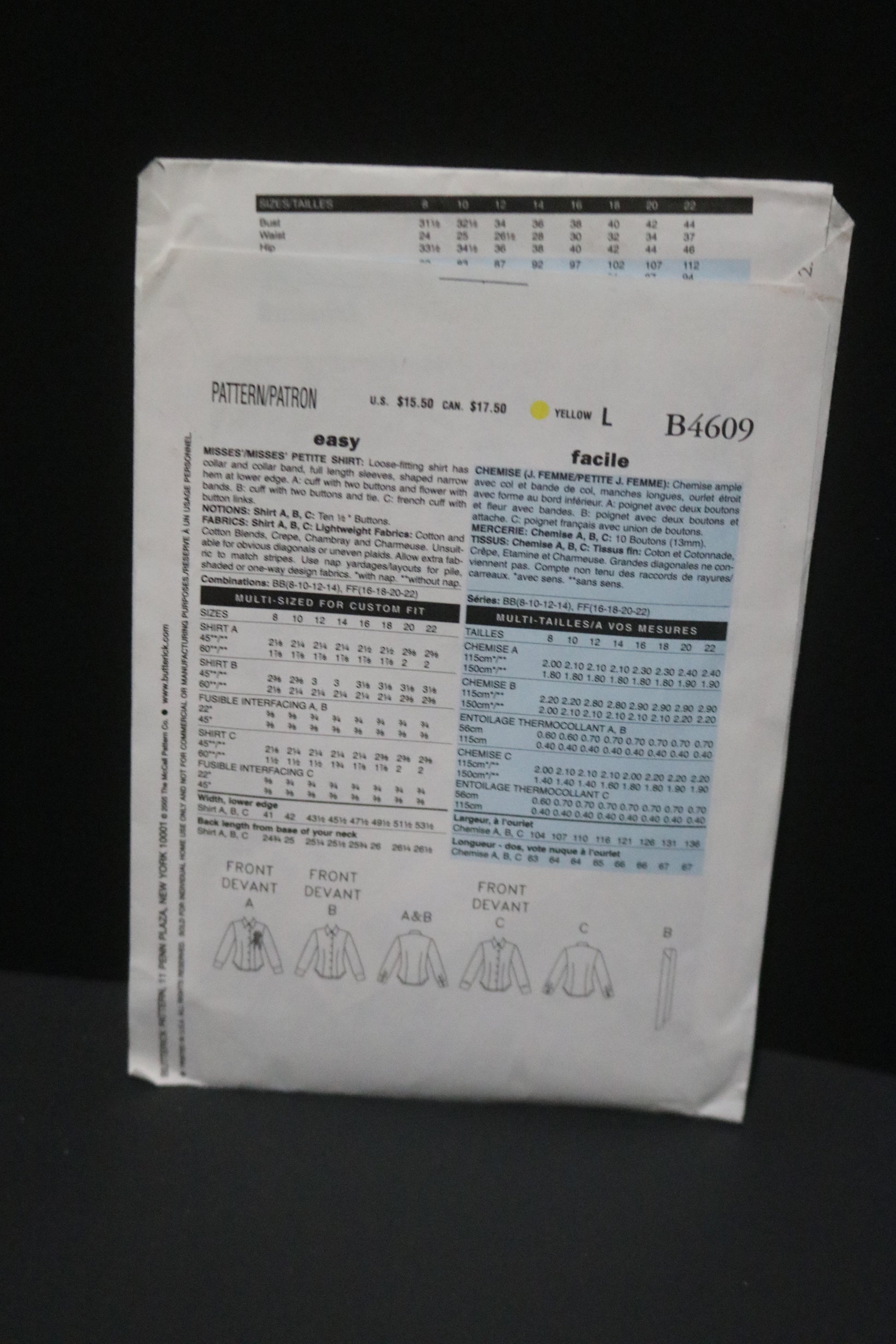 Butterick 4609 Misses / Misses Petite Shirt Sewing Pattern UNCUT - Size 8 10 12 14