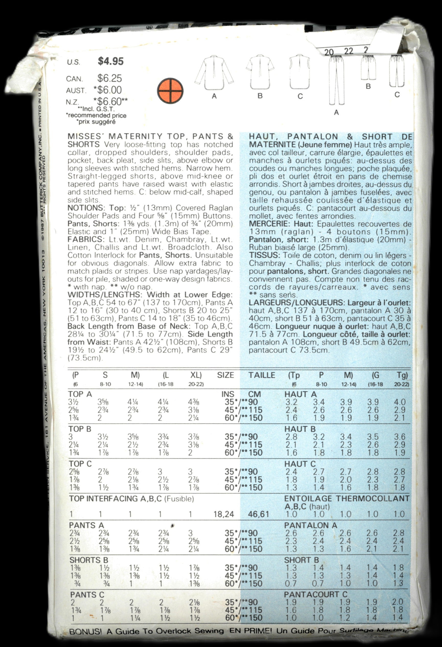 Butterick 4865 Misses Maternity Top Pants and Shorts Sewing Pattern UNCUT Size L - XL