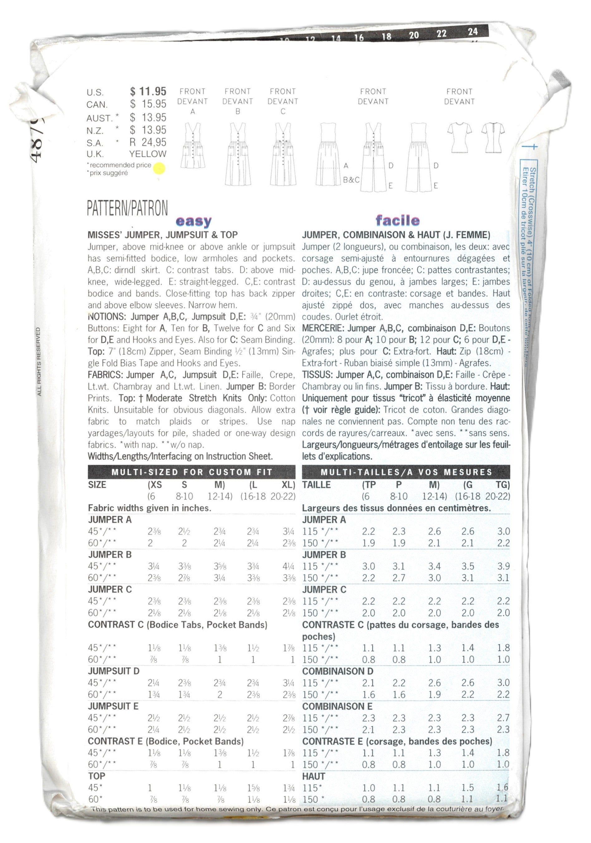 Butterick 4879 Misses Jumper Jumpsuit and Top Sewing Pattern