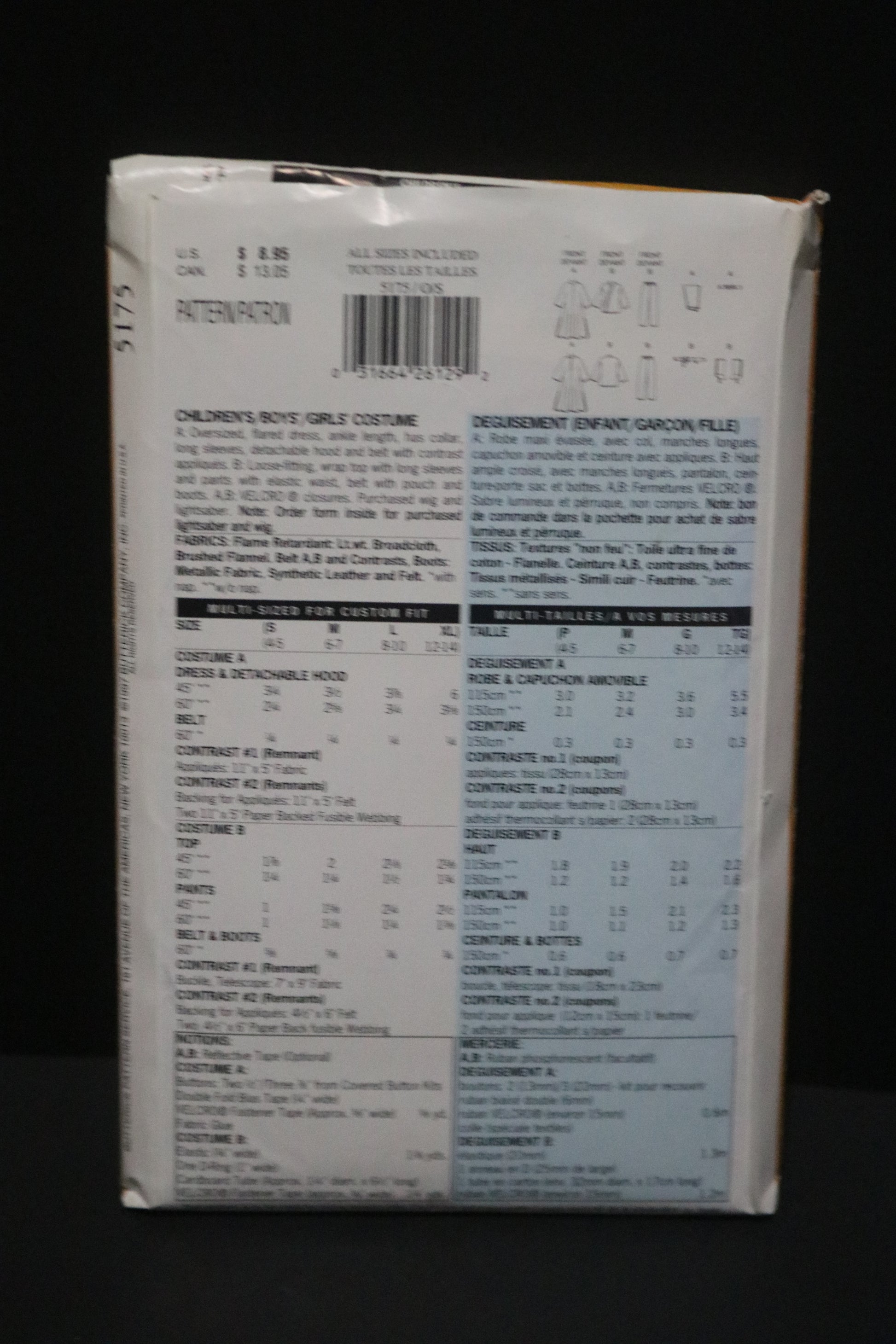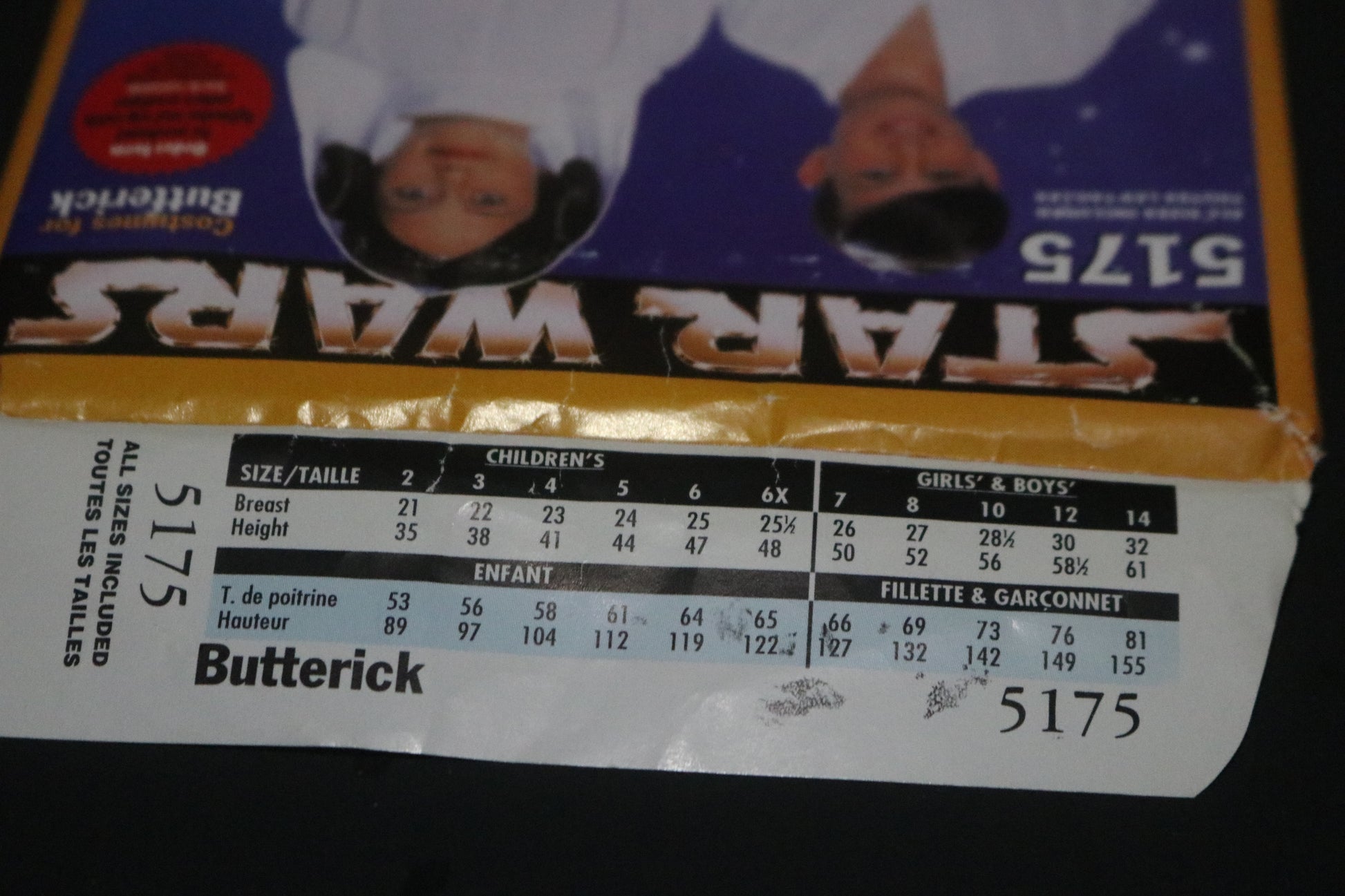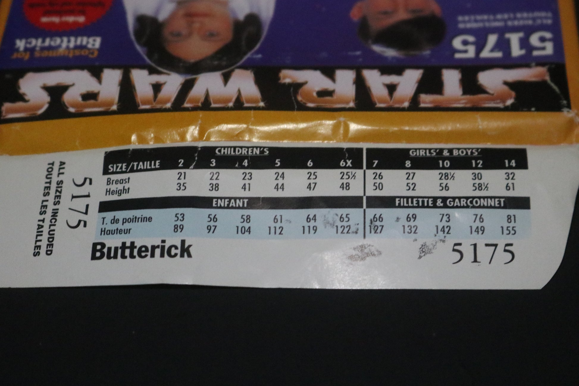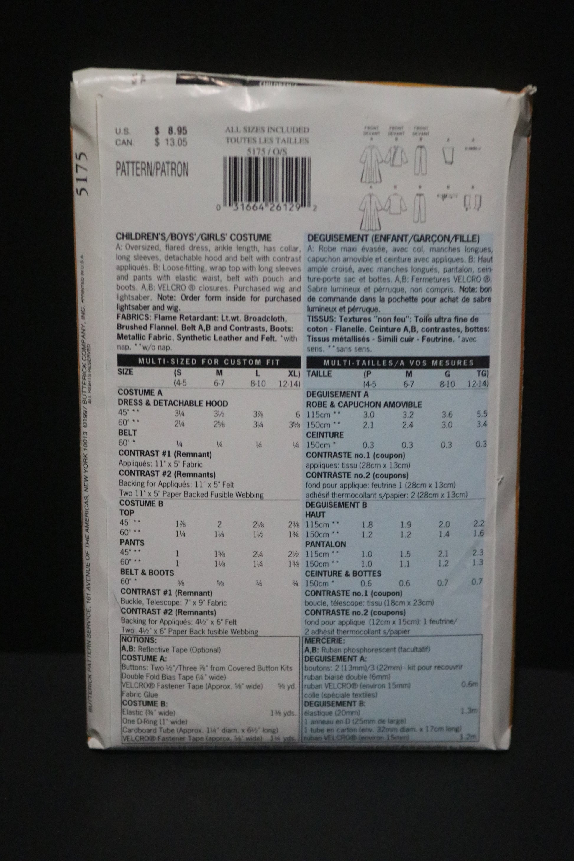 Butterick 5175 Boys Girls Star Wars Luke and Leah Costume Sewing Pattern