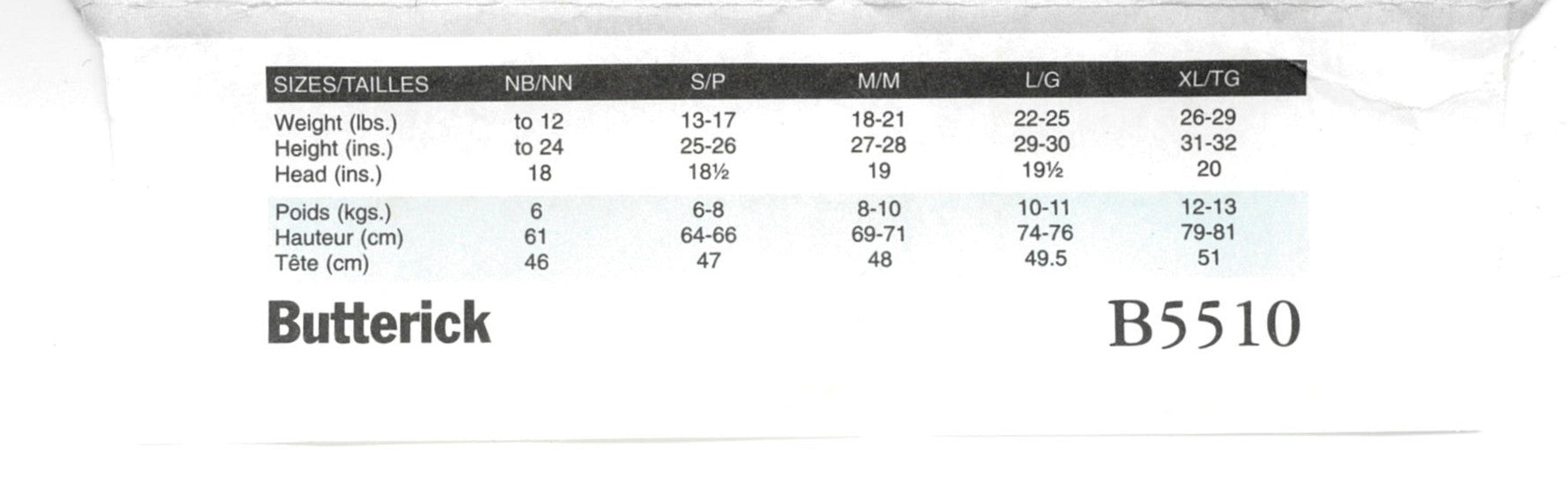 Butterick 5510 Infants Shirt T-Shirt Pants and Hat Sewing Pattern - UNCUT - Size Large ( Lrg - Xlg)