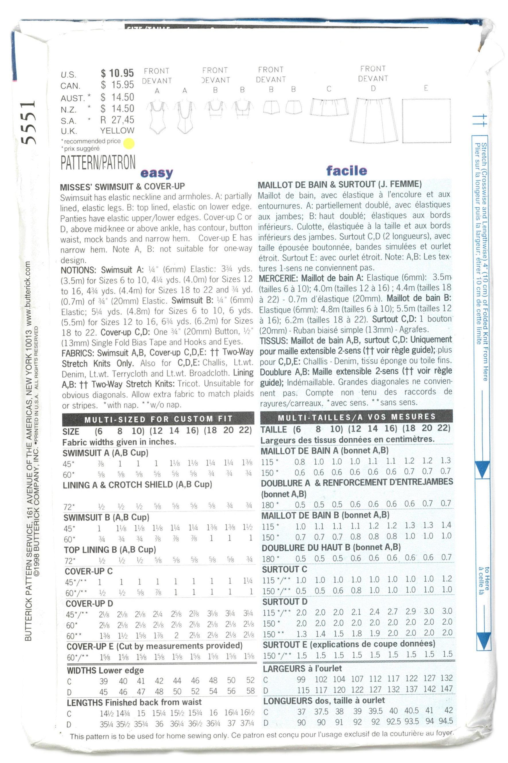 Butterick 5551 Misses Swimsuit and Cover Up Sewing Pattern UNCUT Size 6 8 10