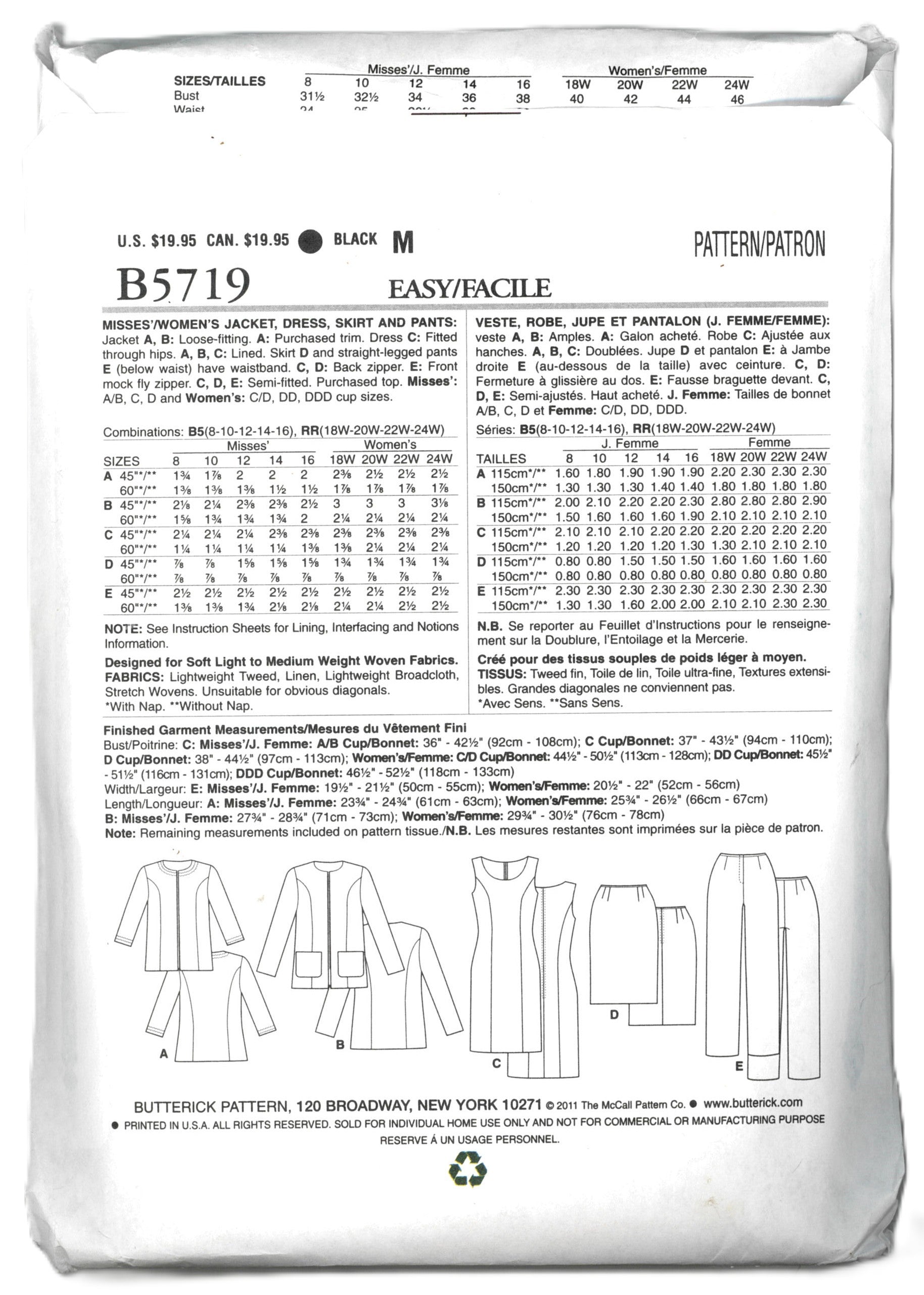 Butterick 5719 Womens Jacket Dress Skirt and Pants Sewing Pattern