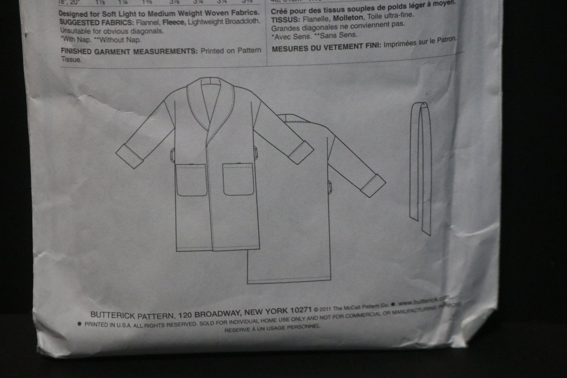 Butterick 5724 Misses . Mens Robe and Belt Sewing Pattern
