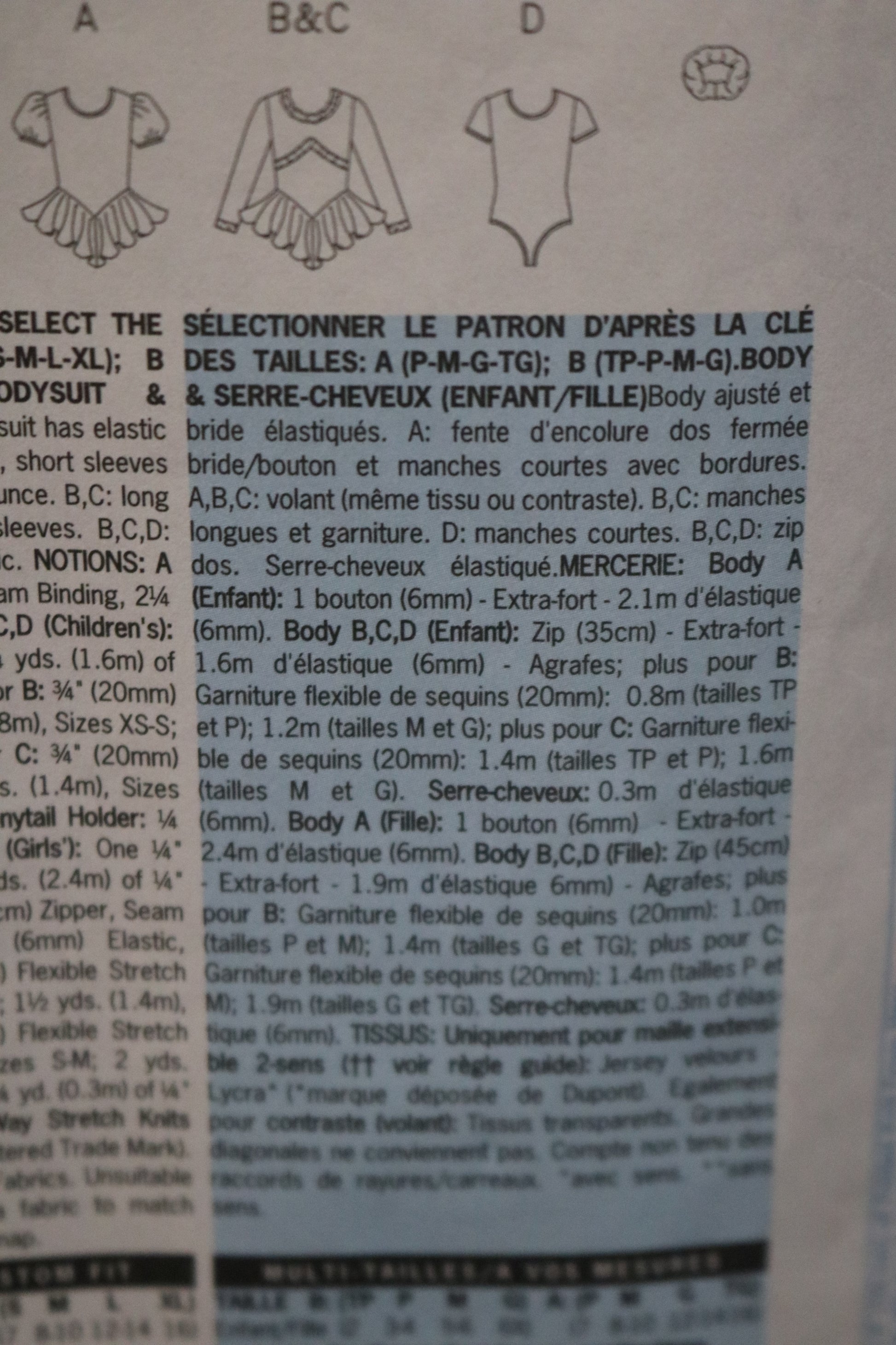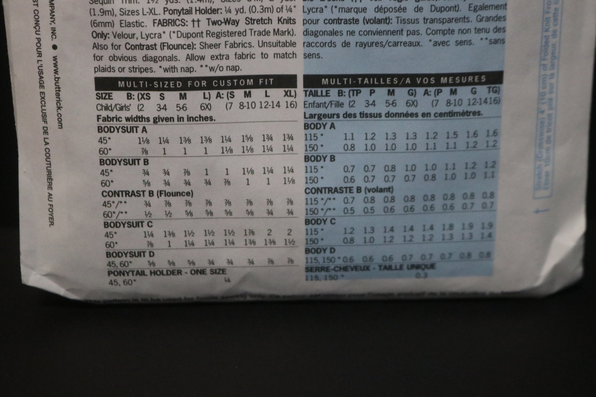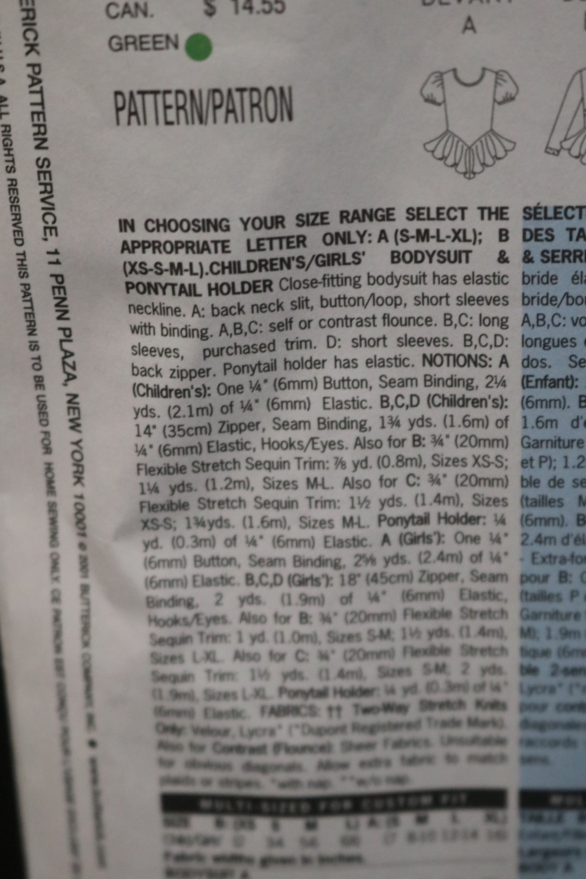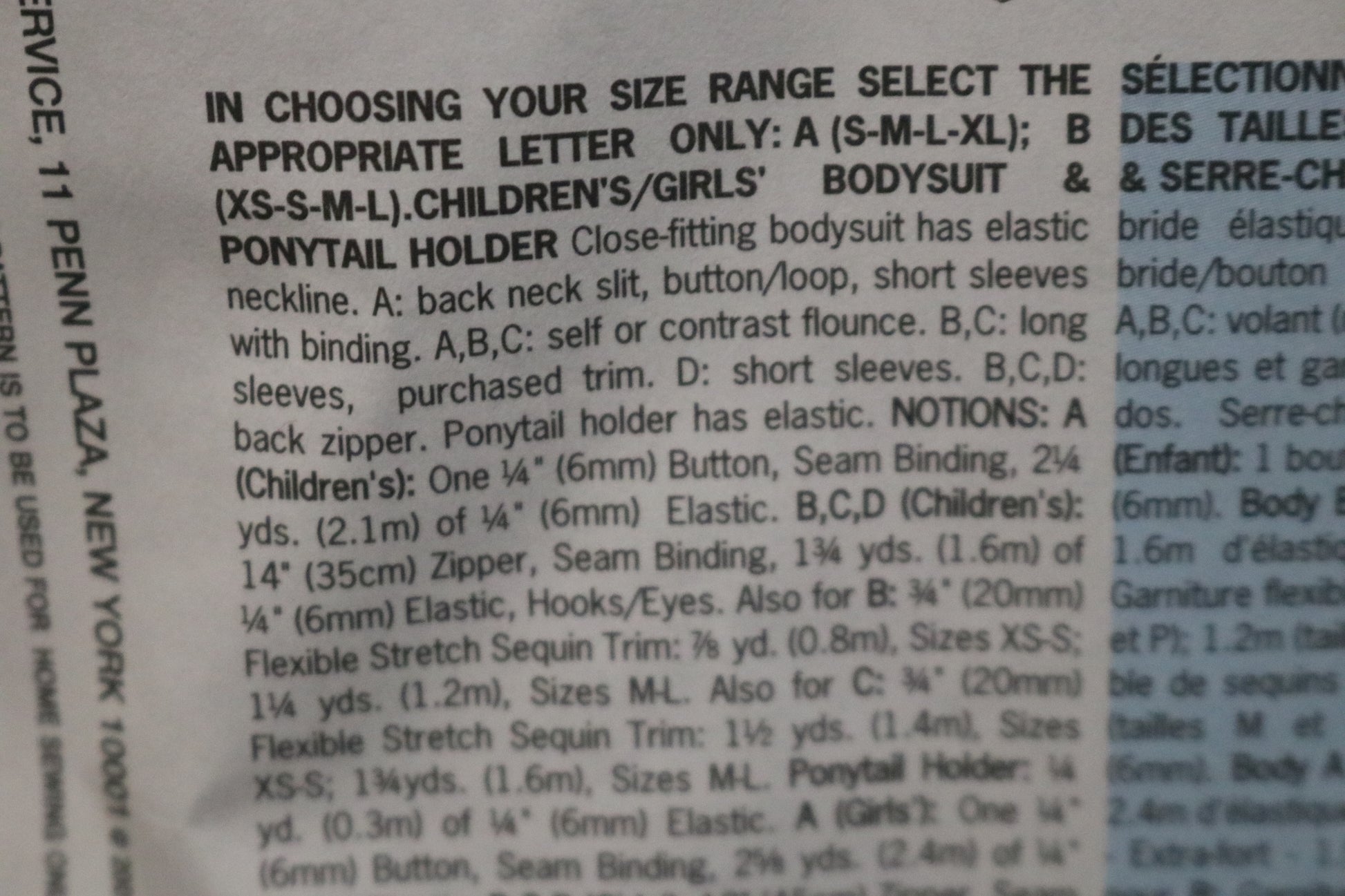Butterick 5782 Childrens Girls Body Suit and Ponytail Holder Sewing Pattern