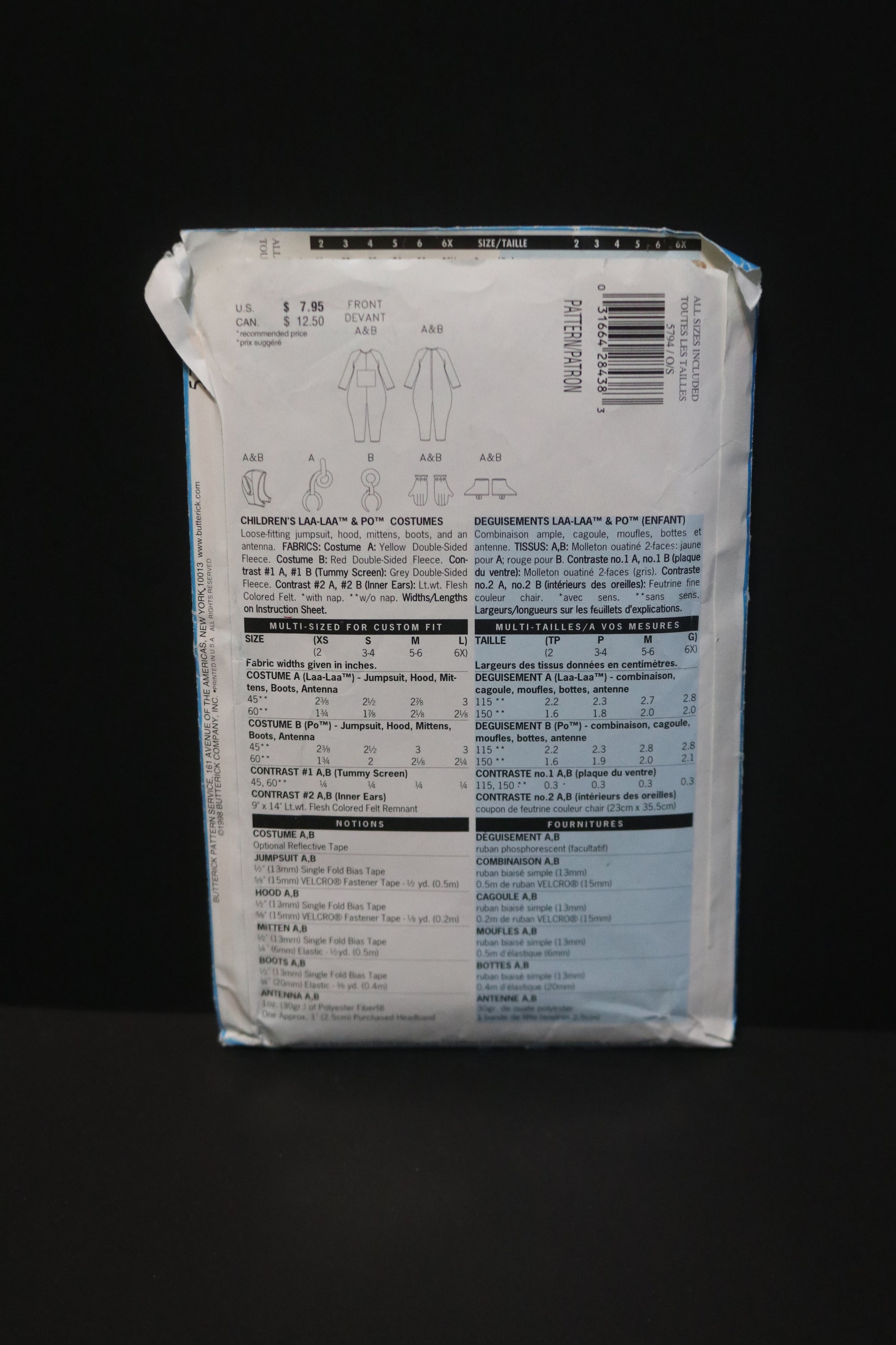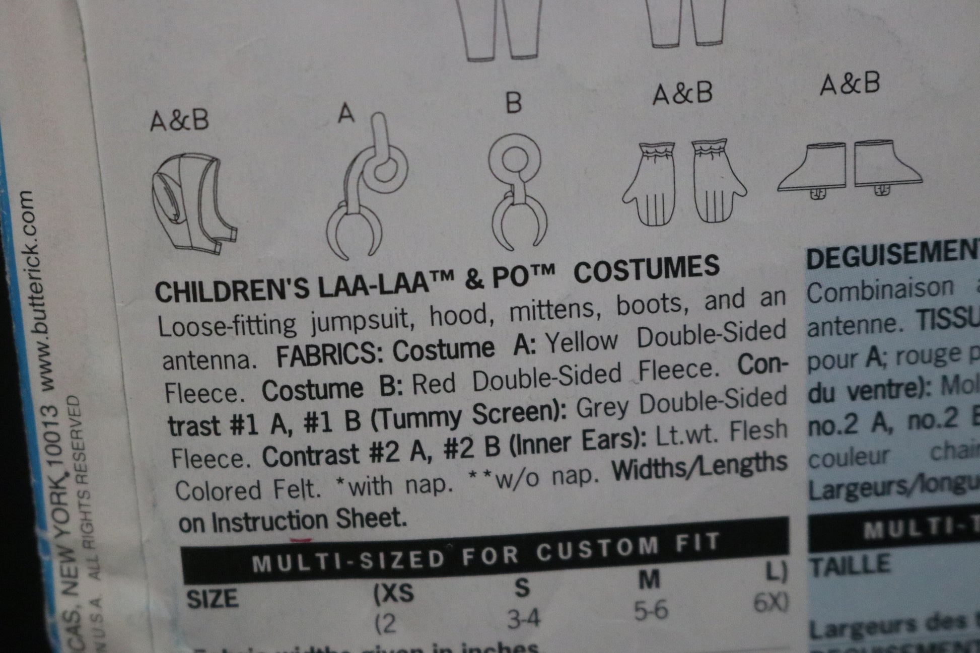Butterick 5794 Tele Tubbies Children's LAA-LAA & PO Costumes Sewing Pattern