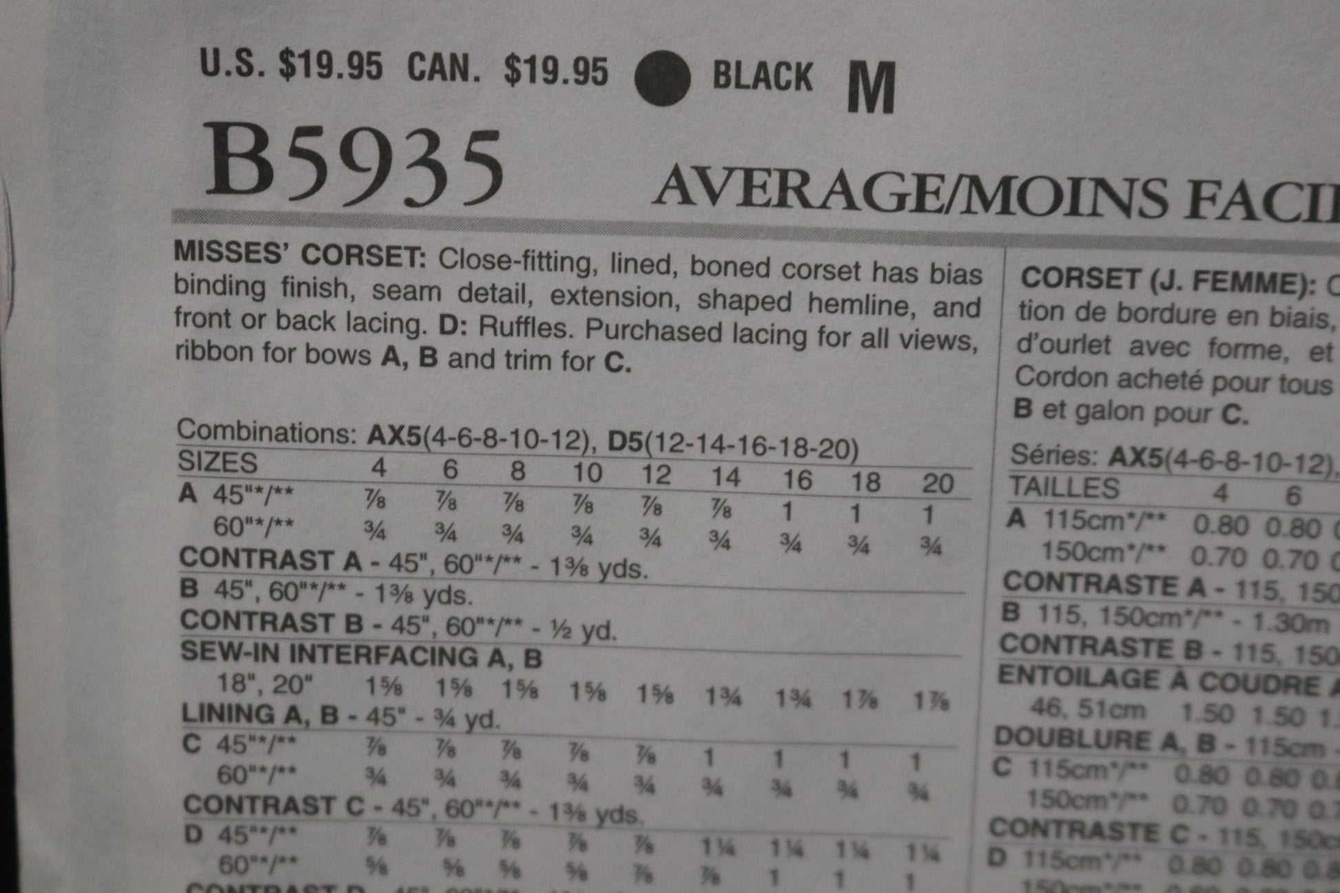 Butterick 5935 Misses Corset Sewing Pattern UNCUT Size 12 14 16 18 20
