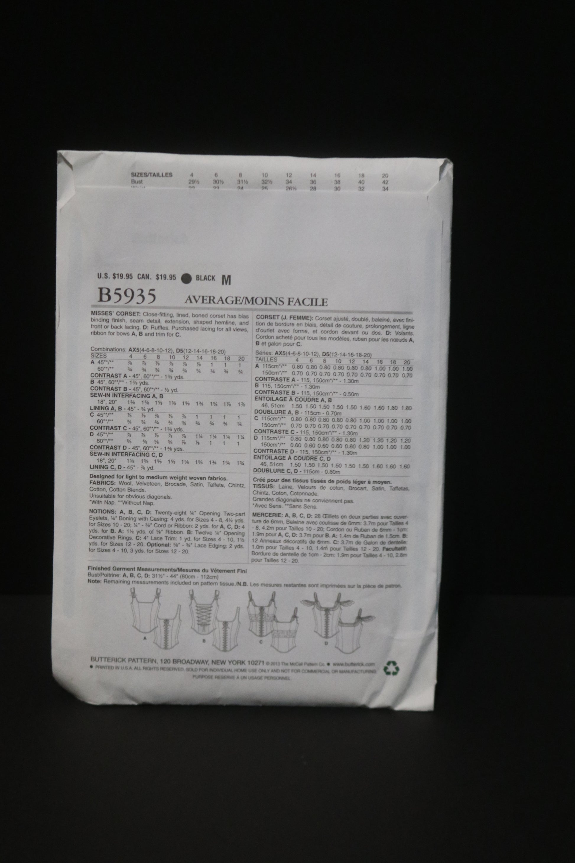 Butterick 5935 Misses Corset Sewing Pattern