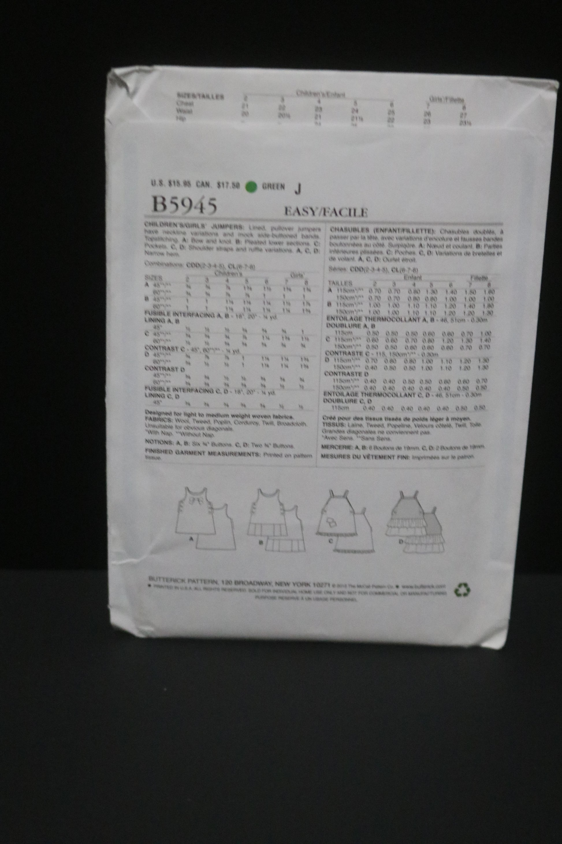 Butterick 5945 Childrens/Girls Jumper Sewing Pattern