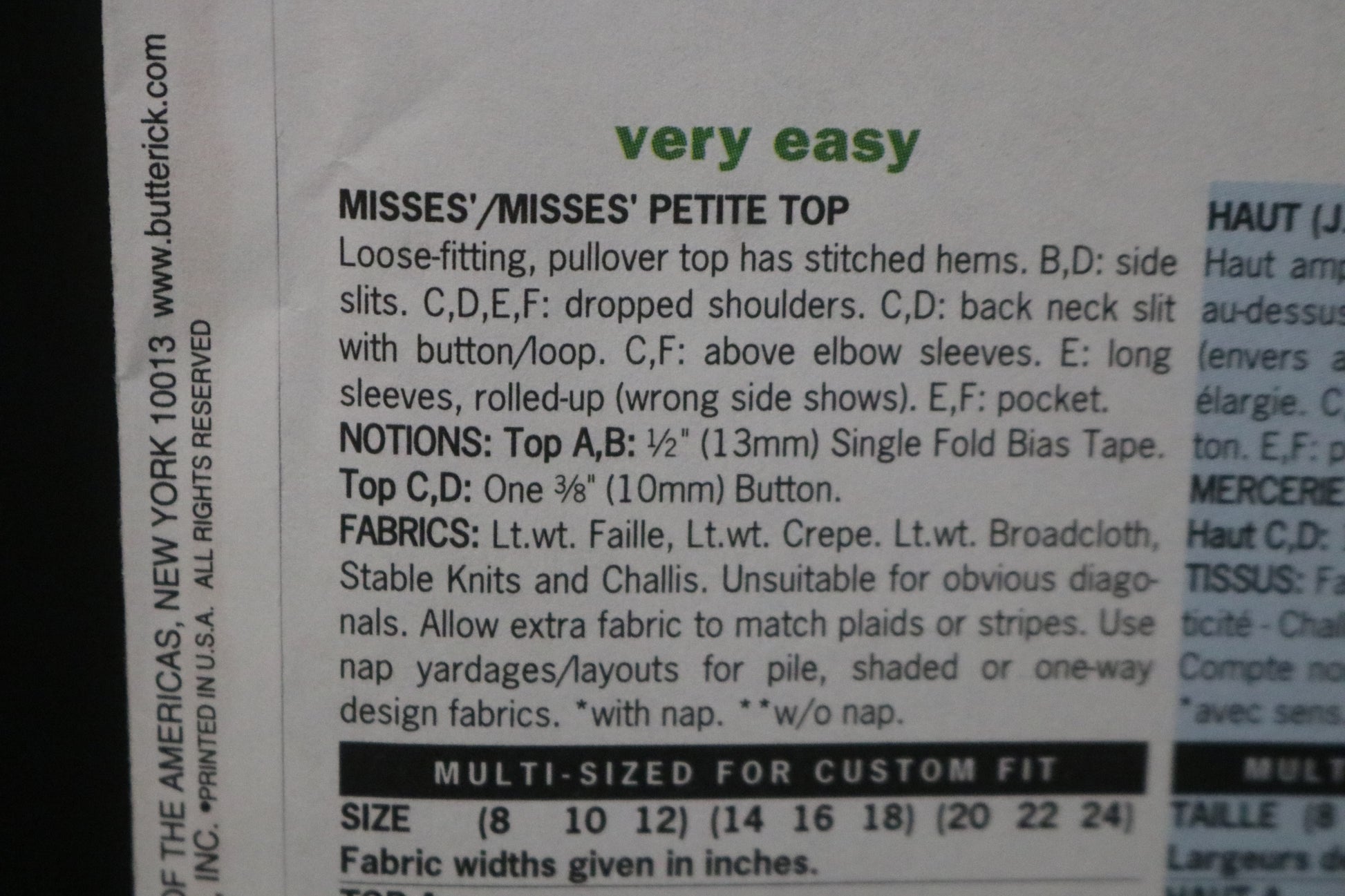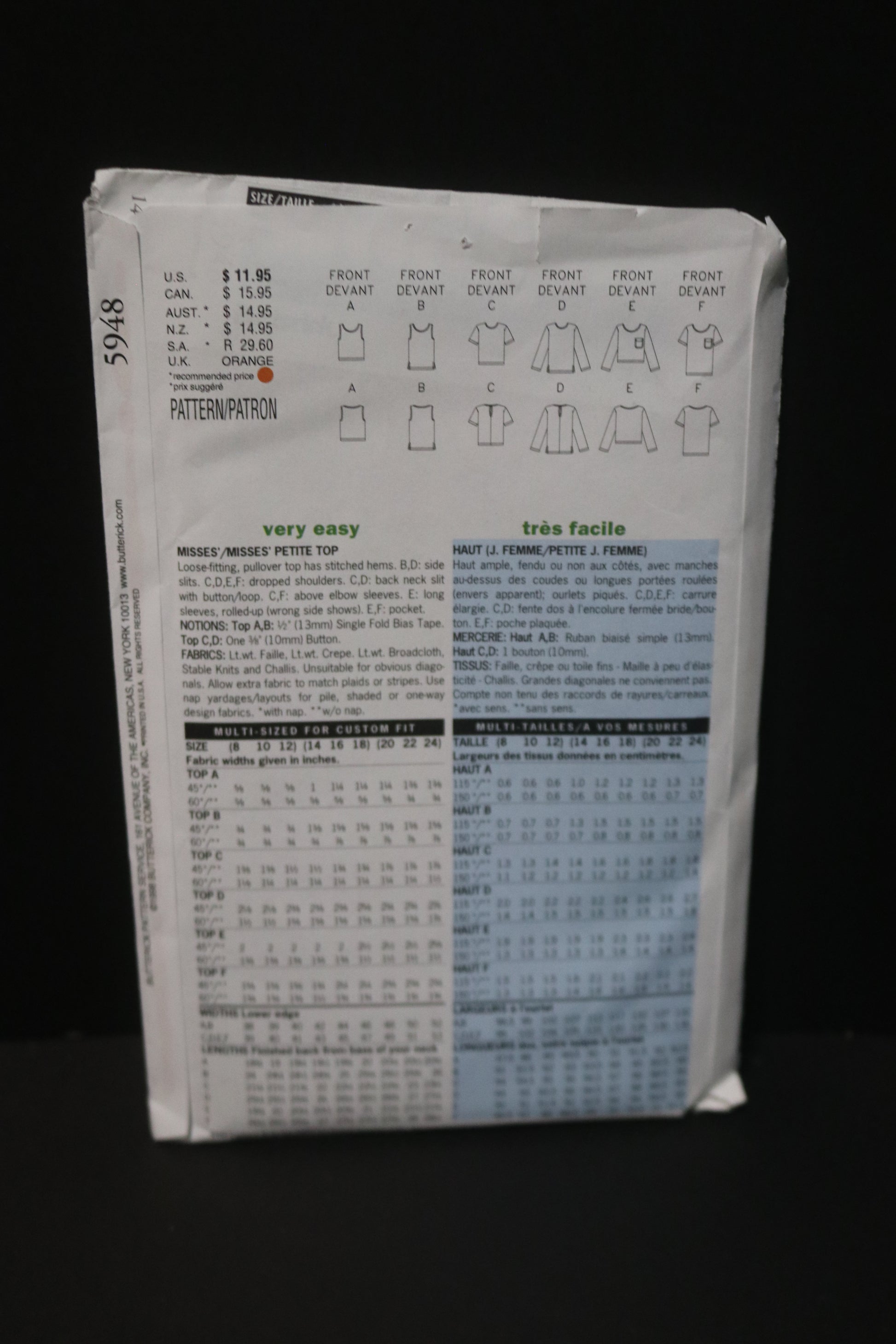 Butterick 5948 Misses / Misses Petite Top Sewing Pattern