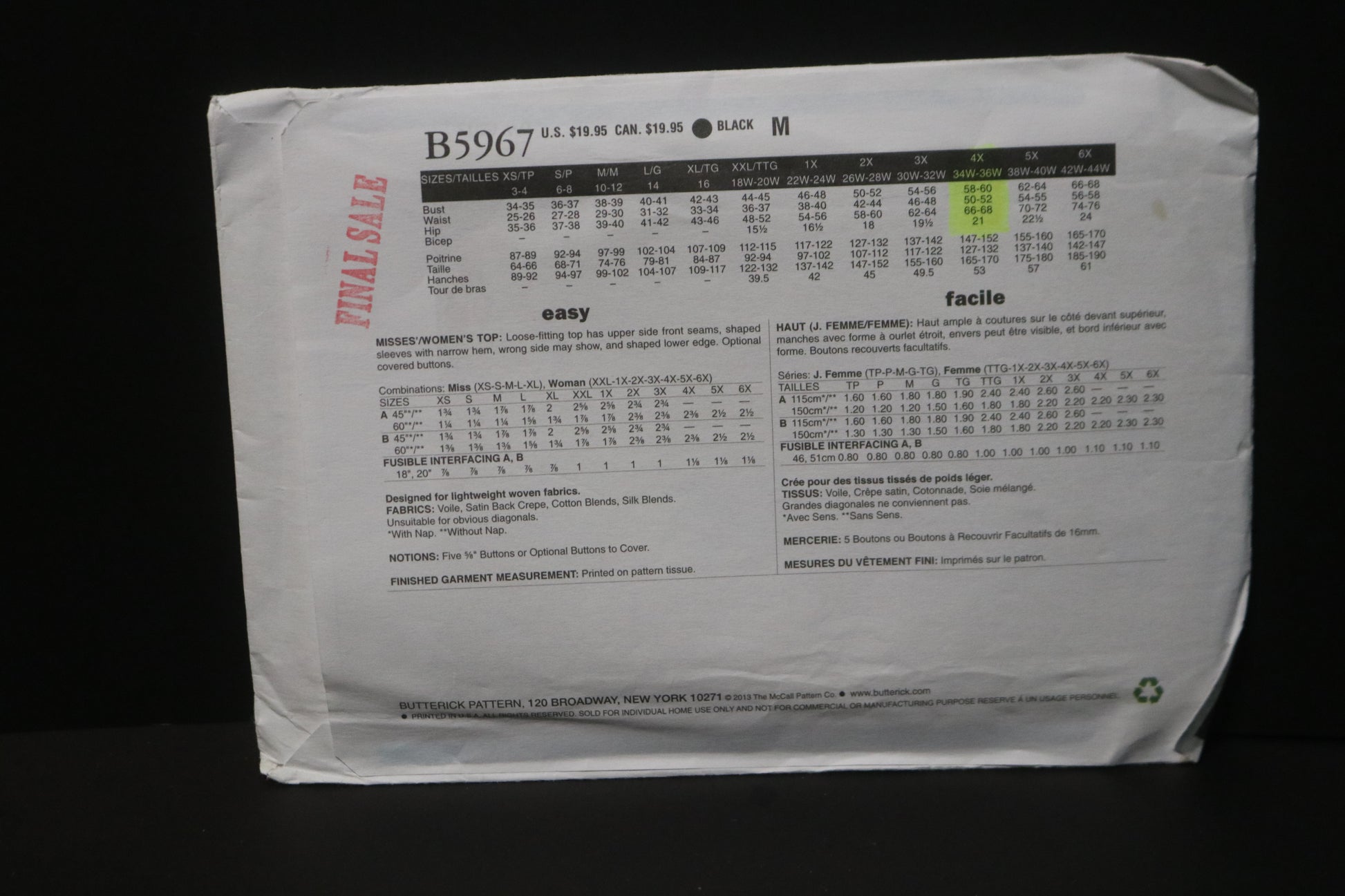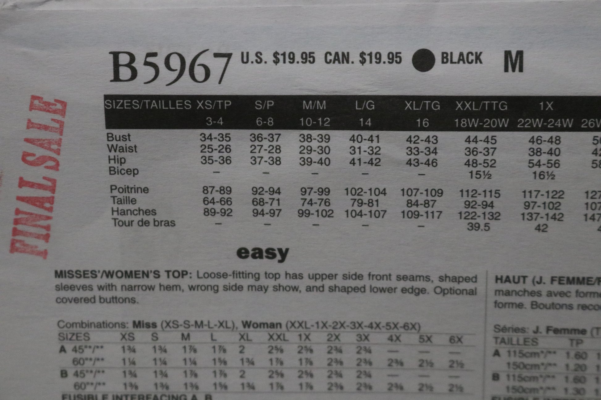 Butterick 5967 Connie Crawford Misses / Womens Top Sewing Pattern