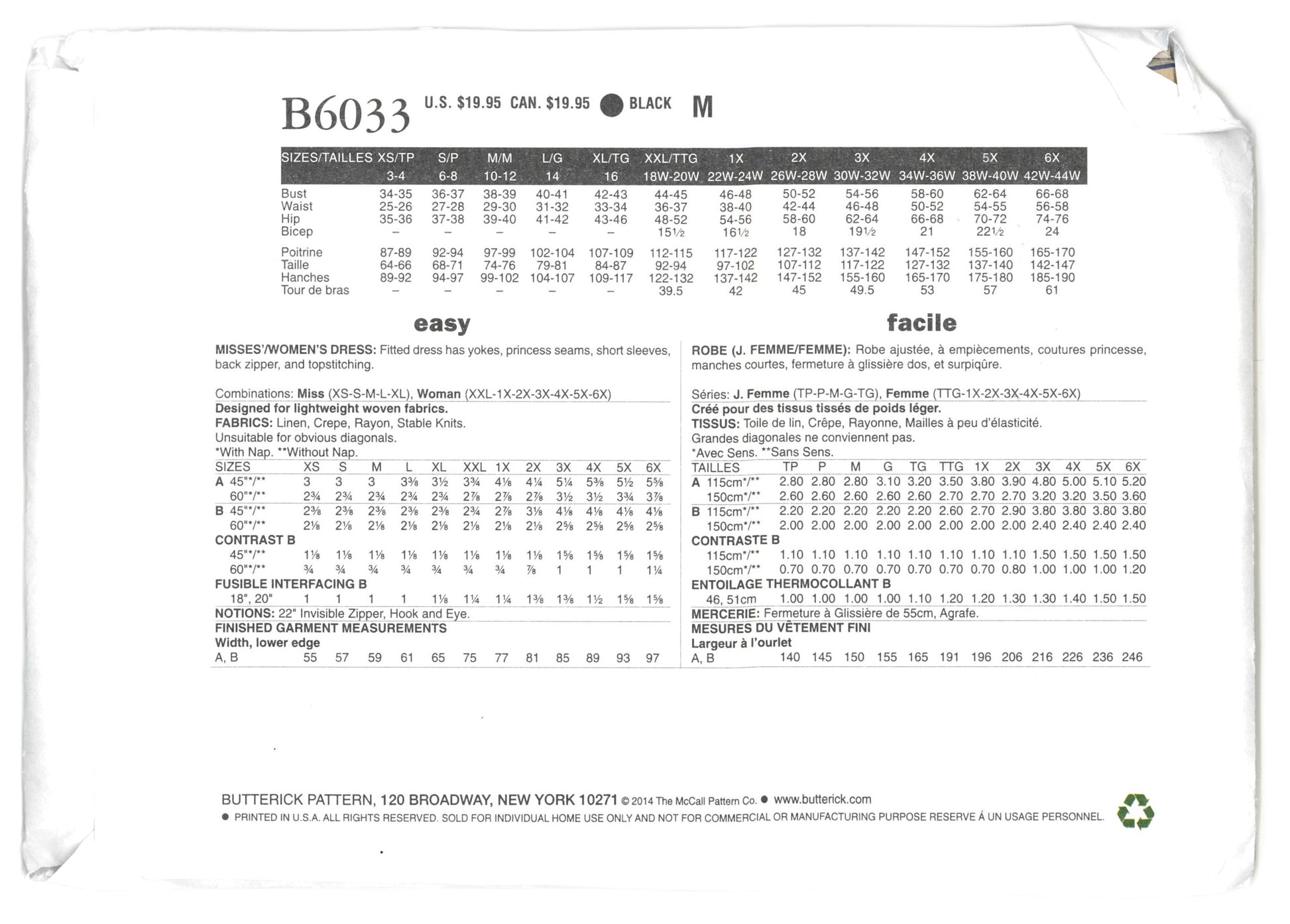 Butterick 6033 Connie Crawford Womens Dress Sewing Pattern - UNCUT - Size Xxl 1x 2x 3x 4x 5x 6x