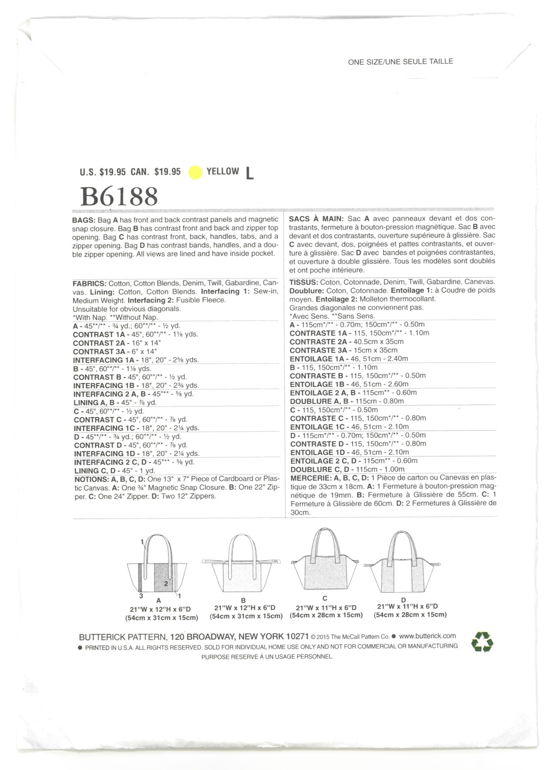 Butterick 6188 Bags Sewing Pattern - UNCUT