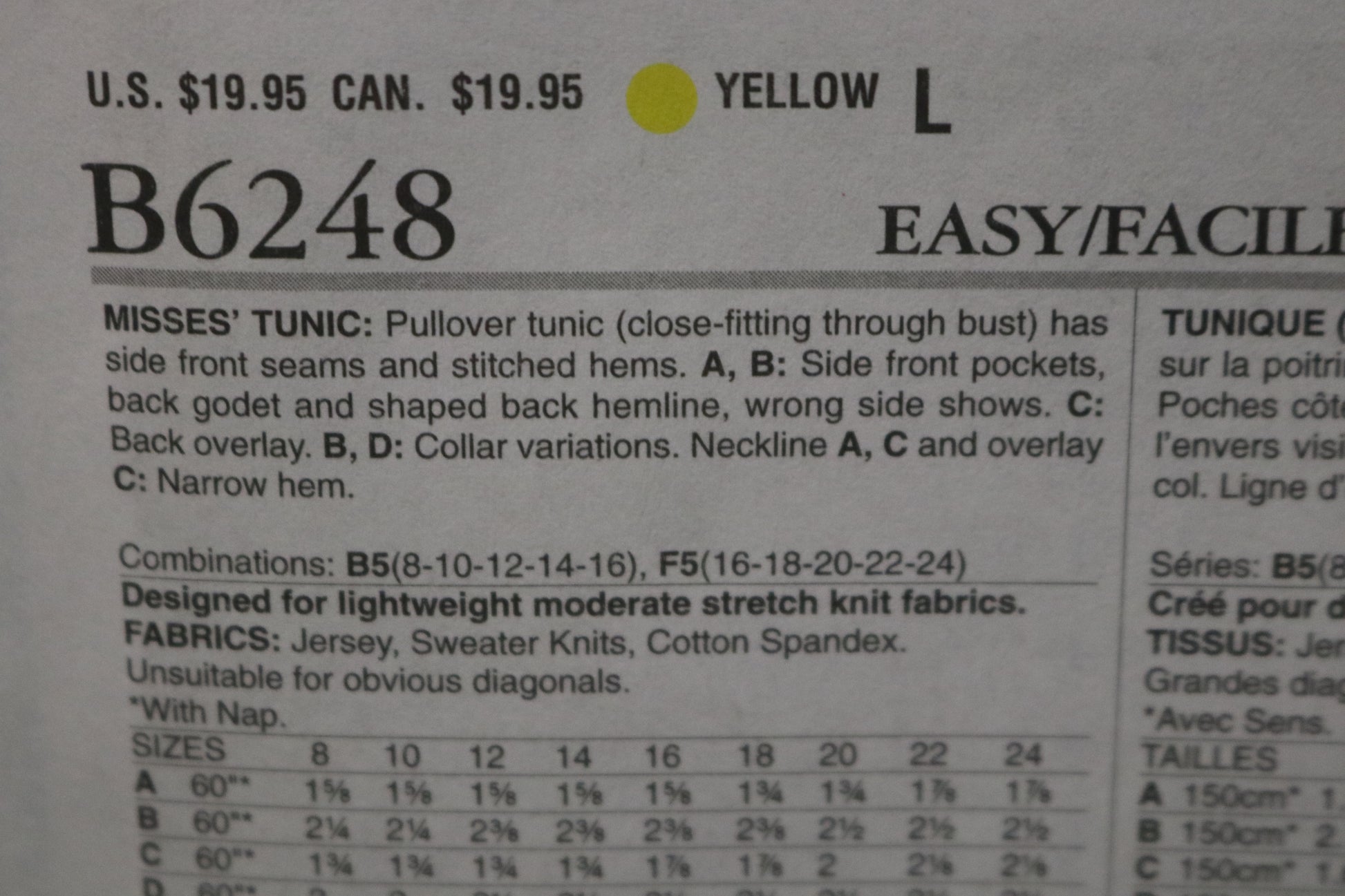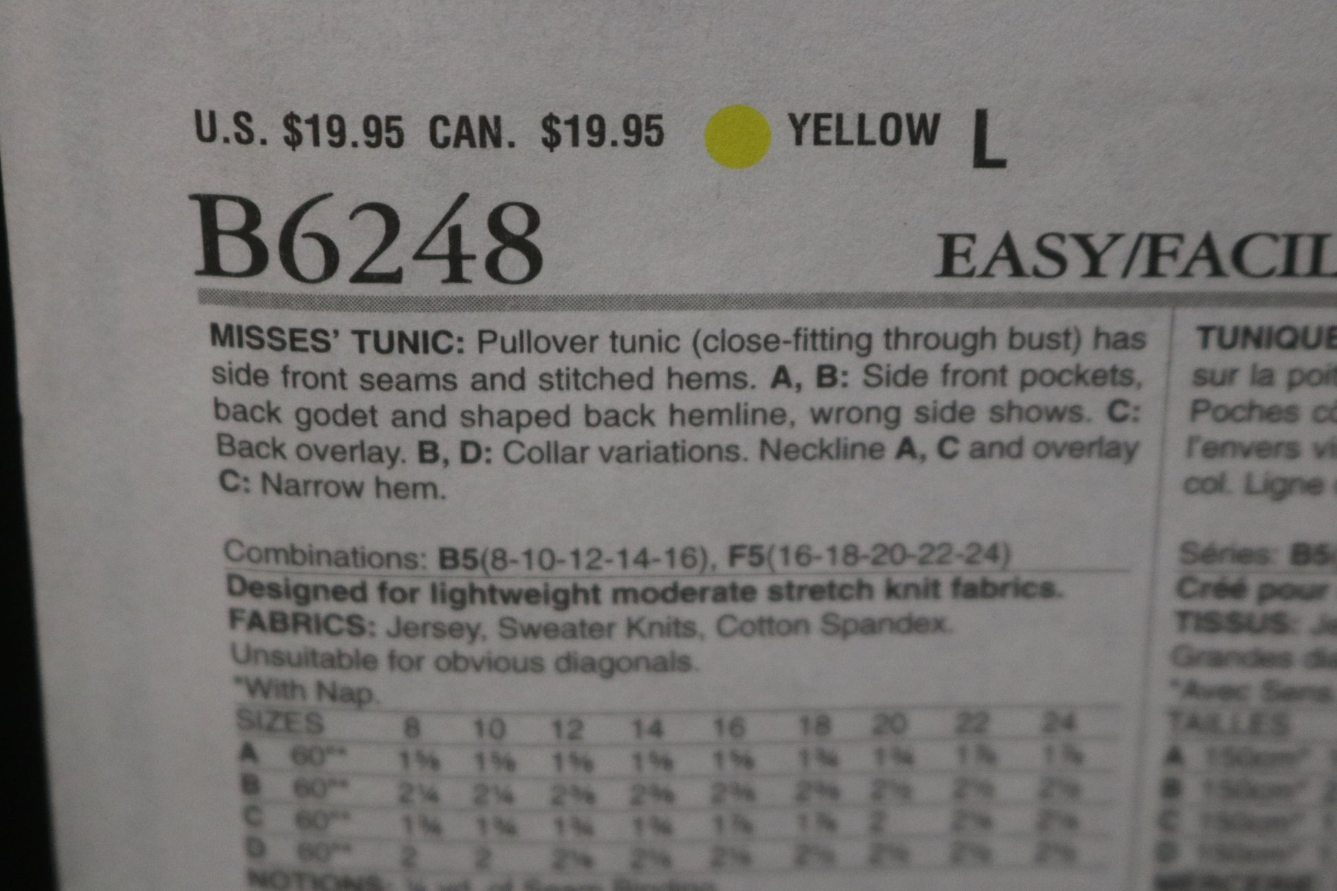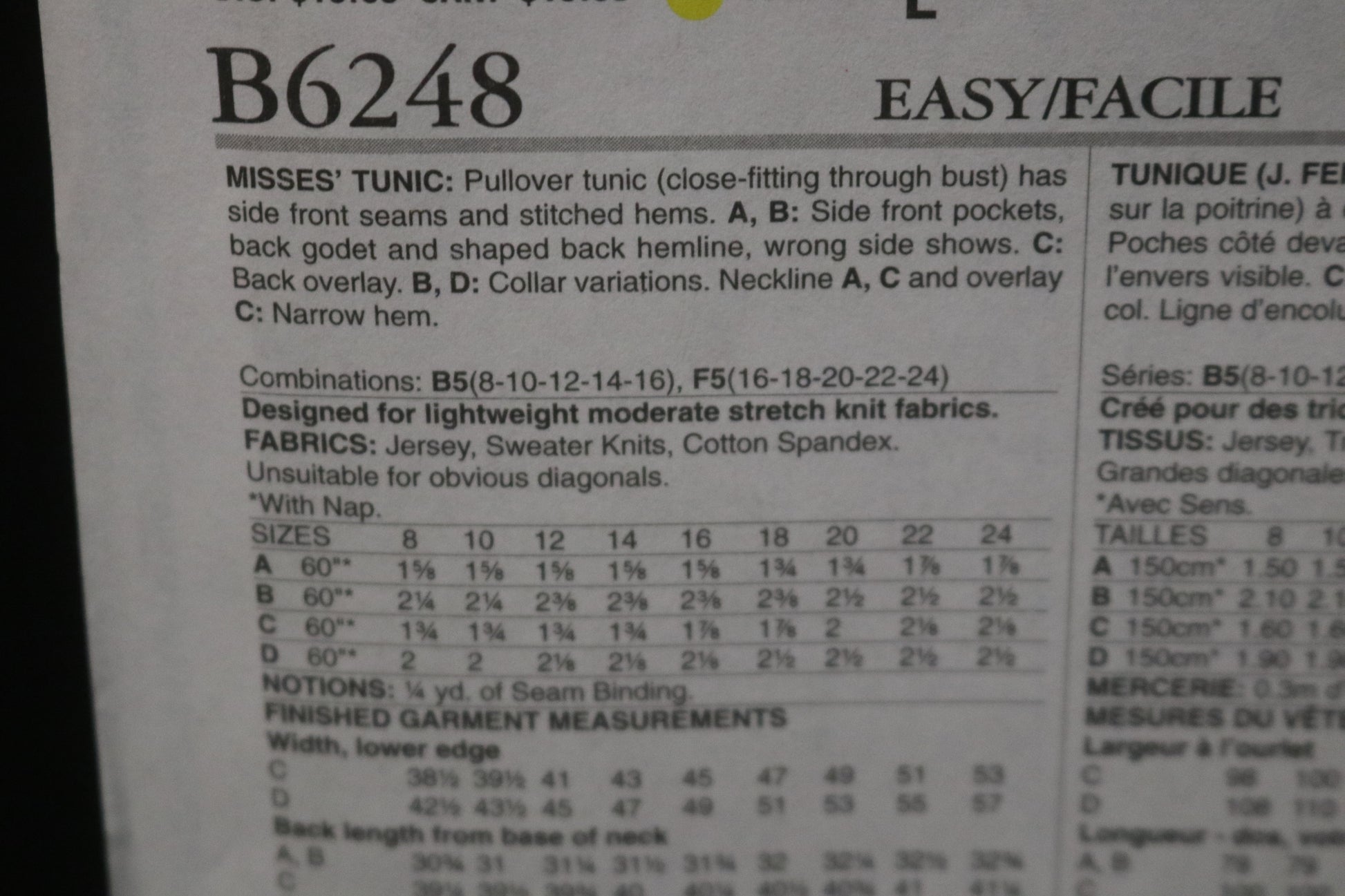Butterick 6248 Misses Tunic Sewing Pattern
