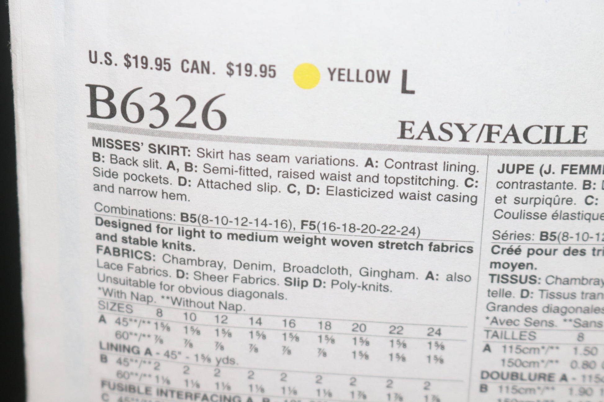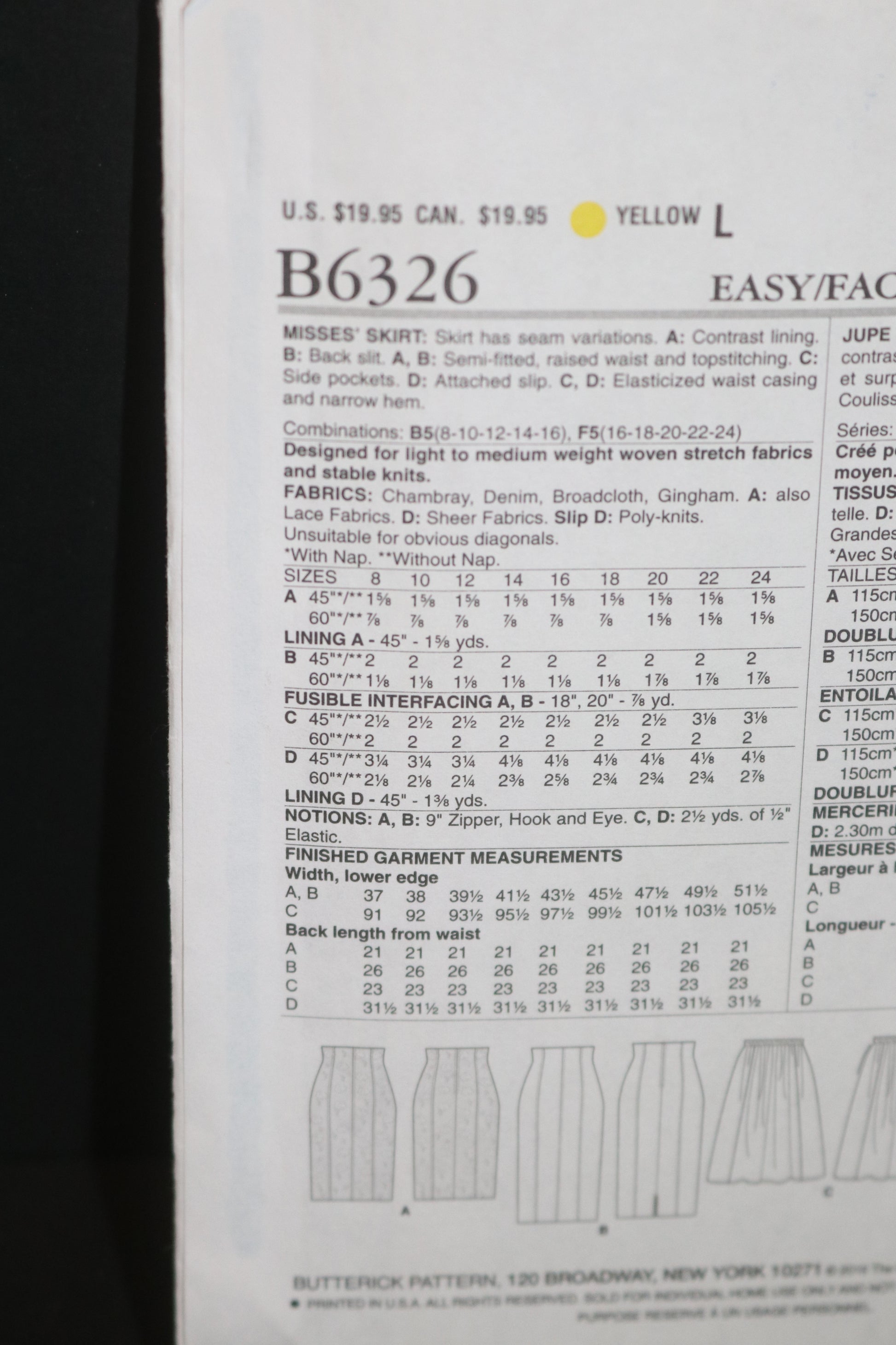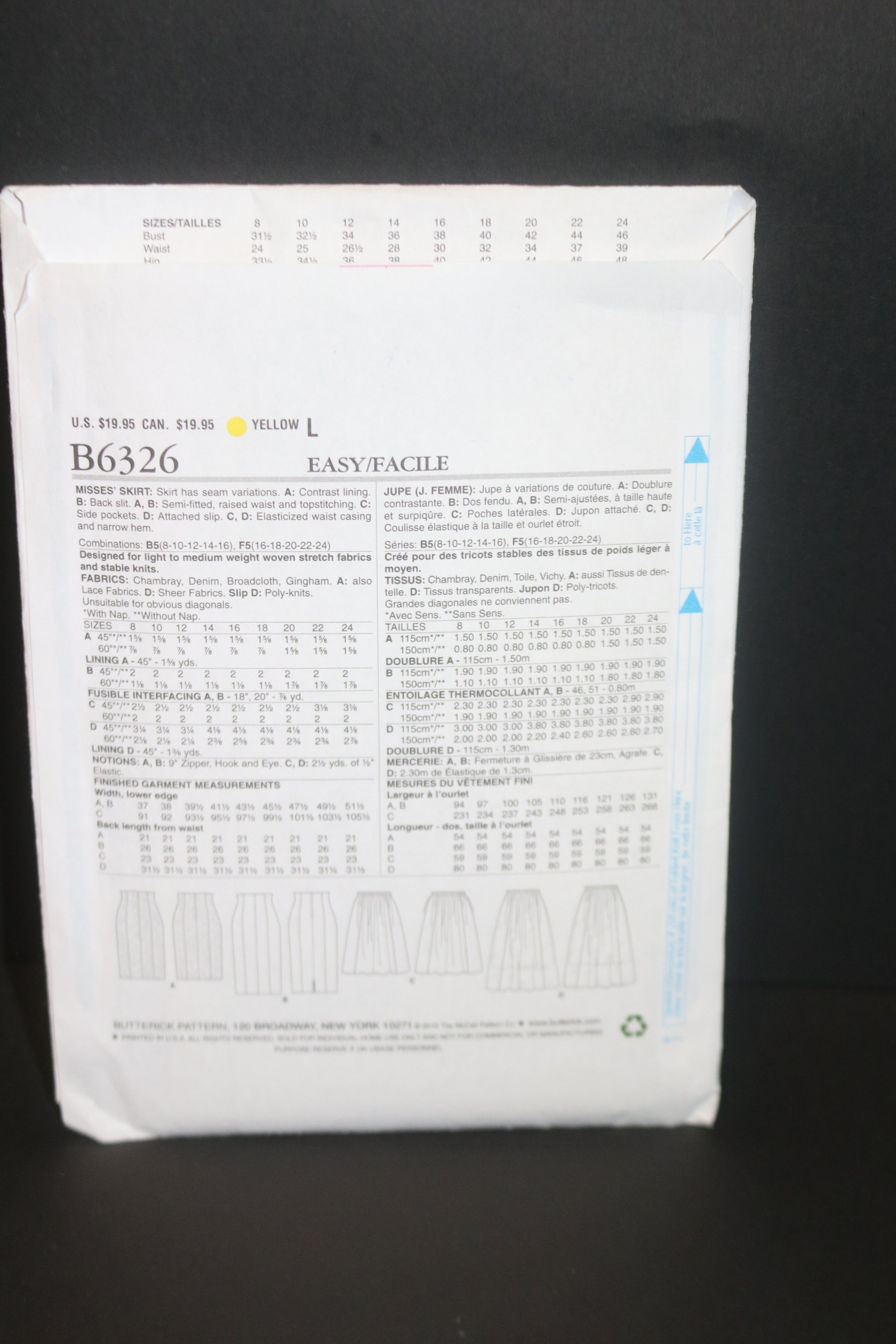 Butterick 6326 Misses Skirt Sewing Pattern