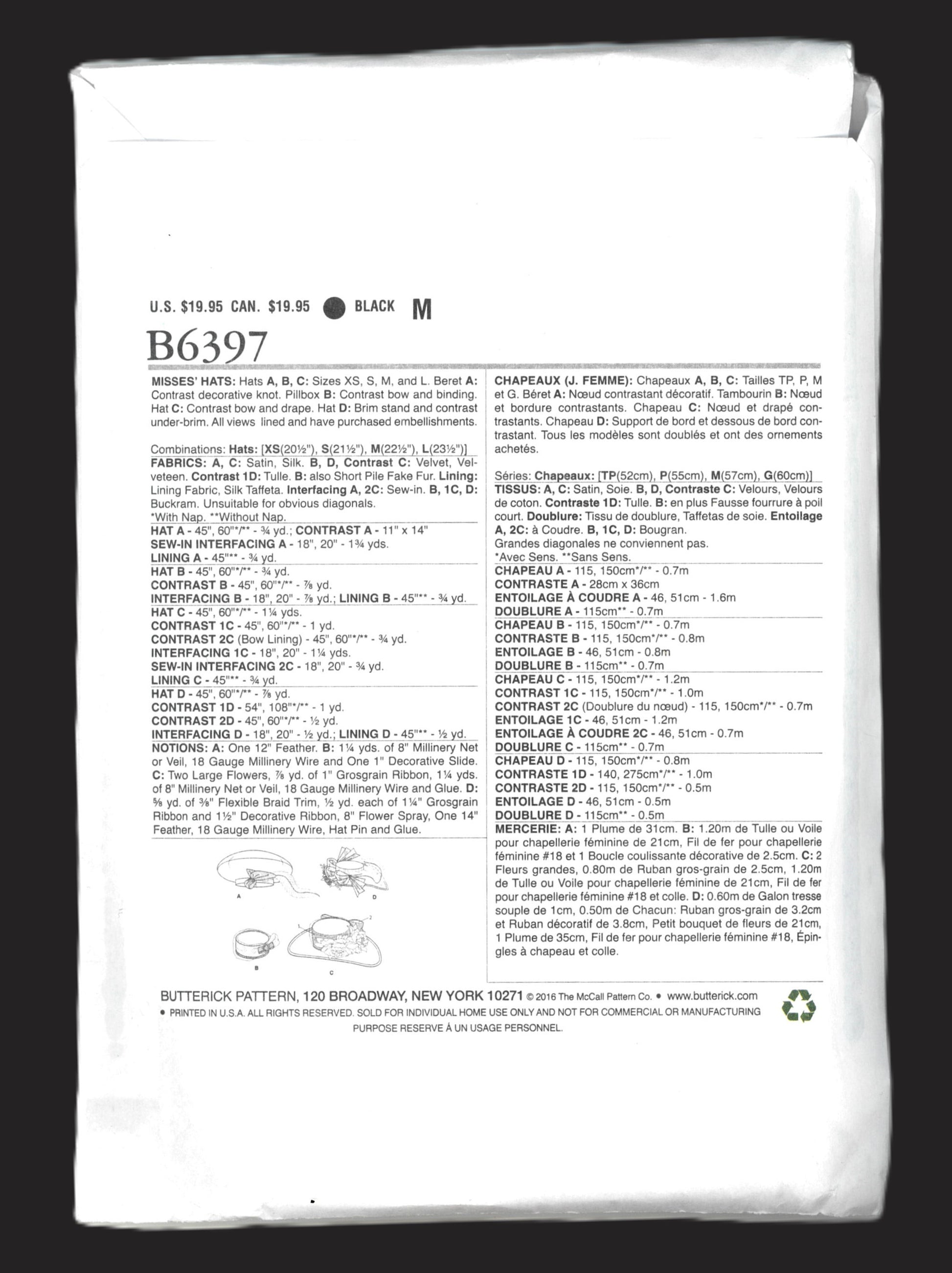 Butterick 6397 Making History Misses Hats Sewing Pattern