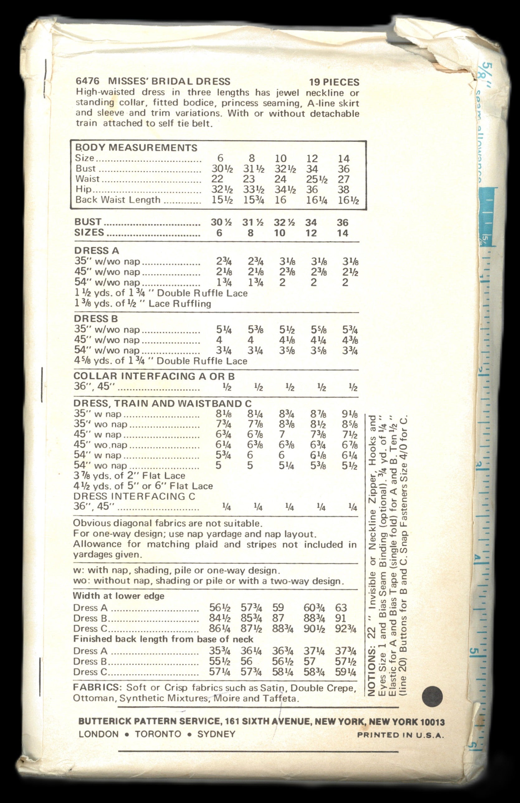 Butterick 6476 Misses Bridal Dress Sewing Pattern
